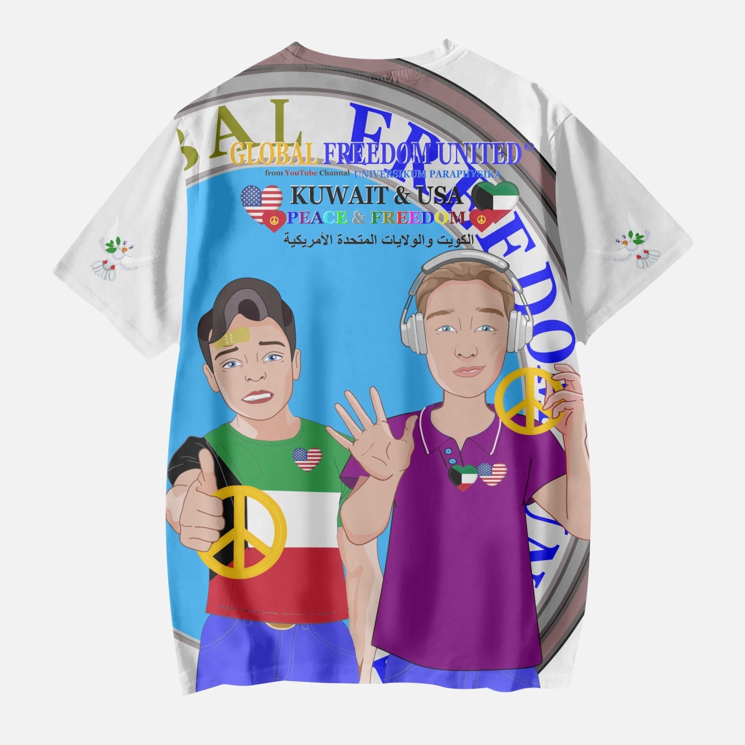 GLOBAL FREEDOM UNITED BOYS KUWAIT & USA OLD PEACE WIGHT AOP Kids' Short T-Shirts