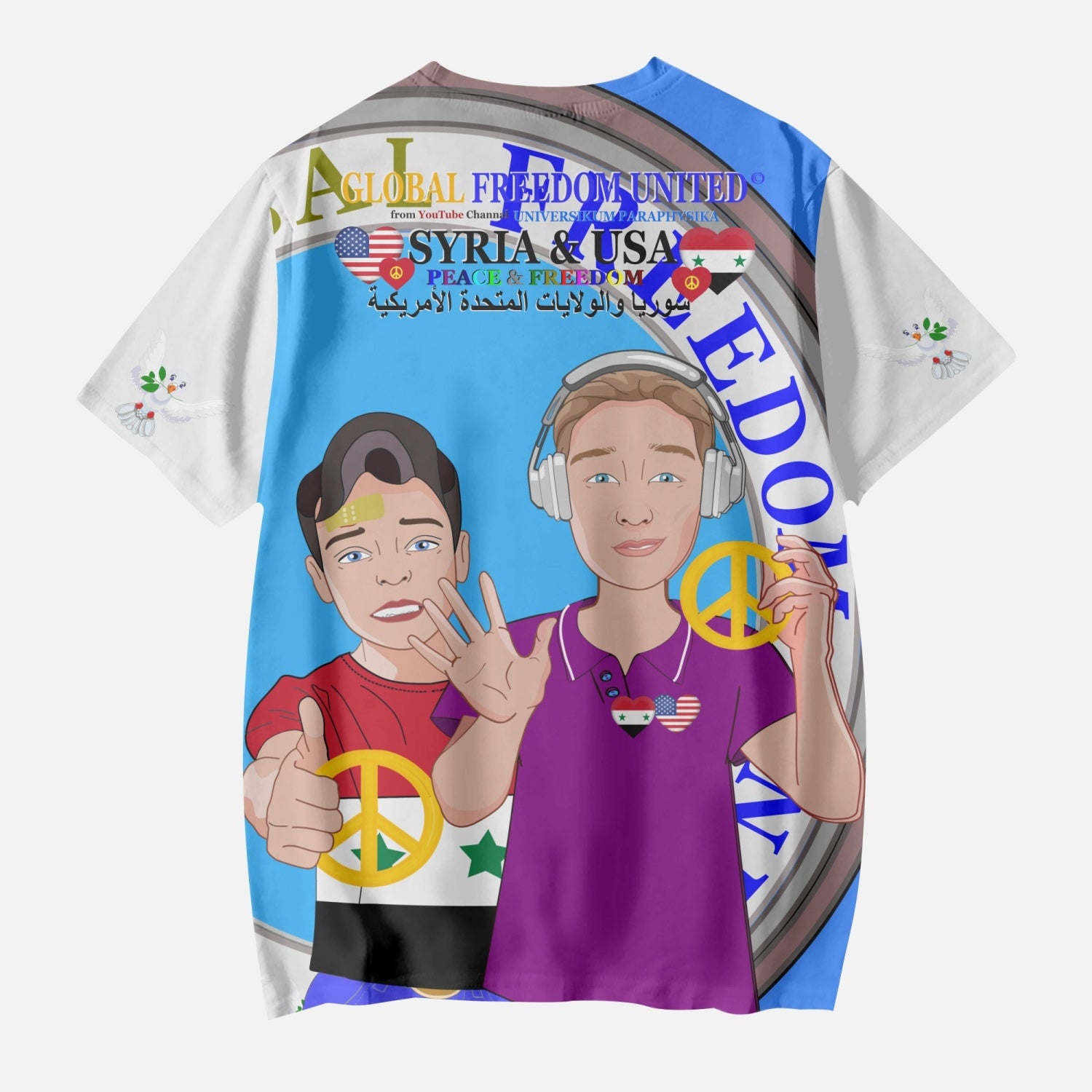 GLOBAL FREEDOM UNITED BOYS SYRIA & USA OLD PEACE BLUE AOP Kids' Short T-Shirts