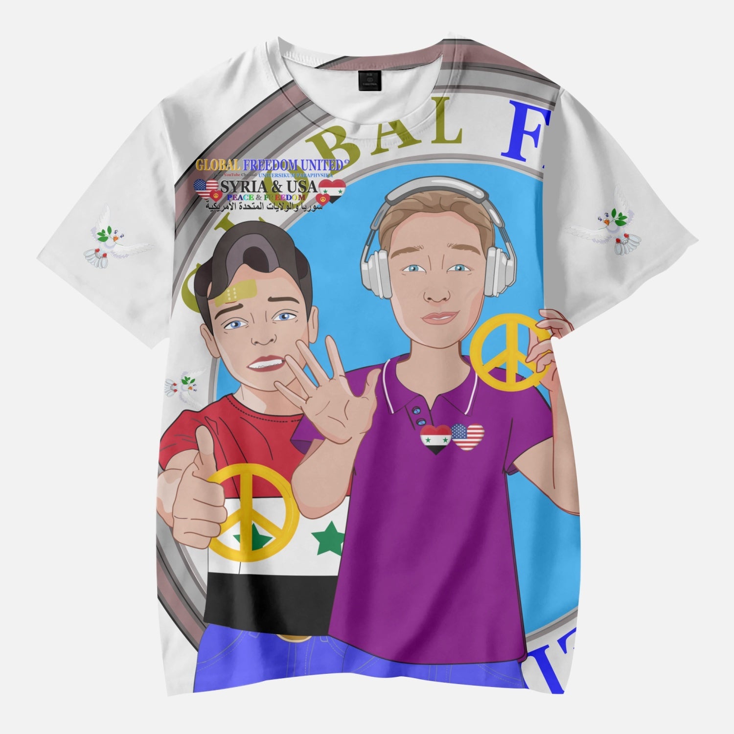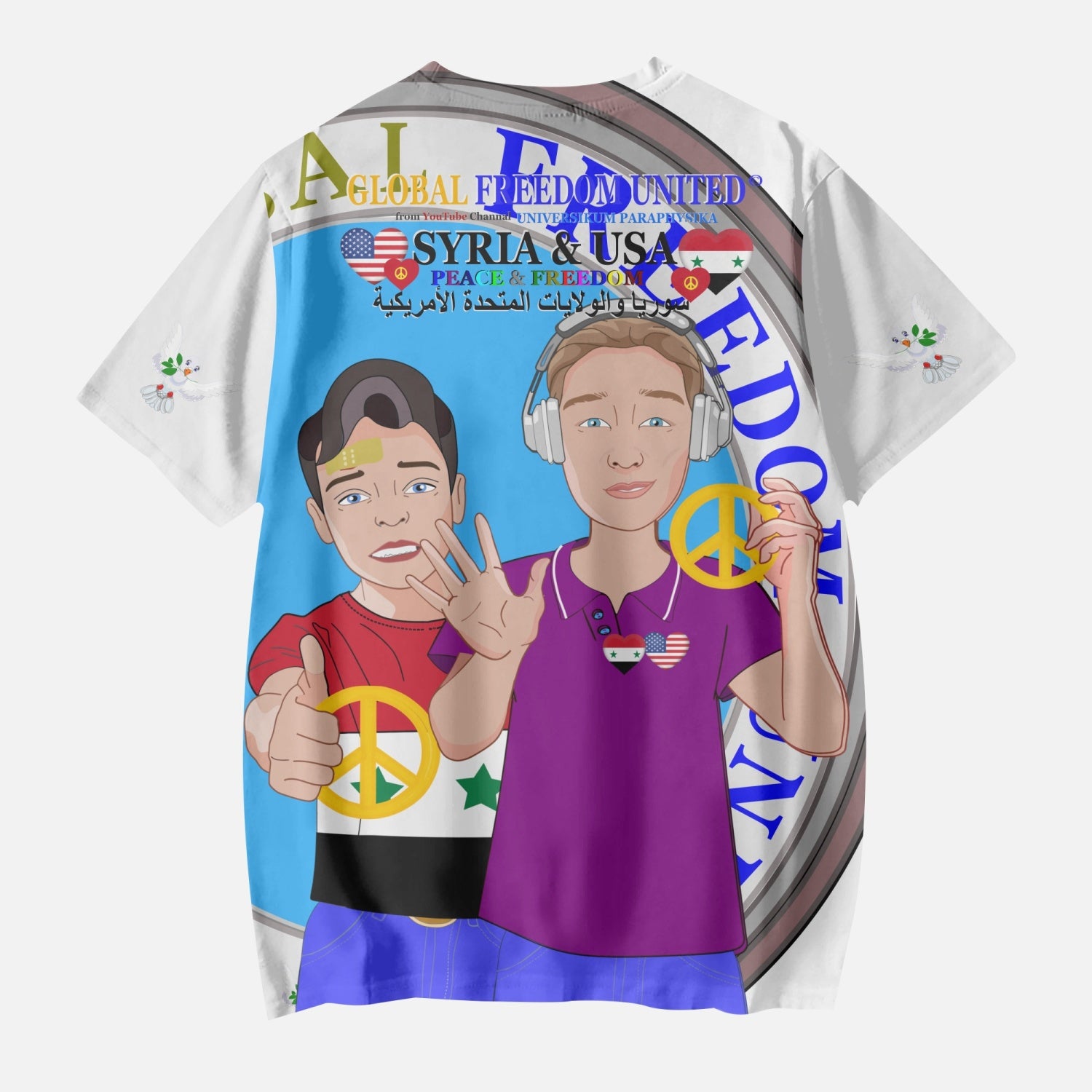 GLOBAL FREEDOM UNITED BOYS SYRIA & USA OLD PEACE WIGHT AOP Kids' Short T-Shirts