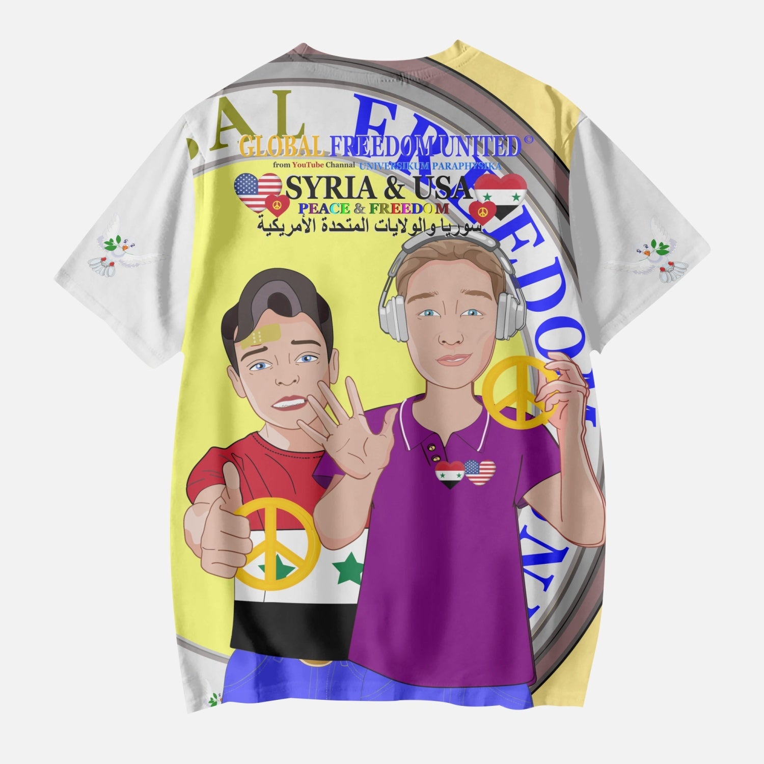 GLOBAL FREEDOM UNITED BOYS SYRIA & USA OLD PEACE YELLOW AOP Kids' Short T-Shirts