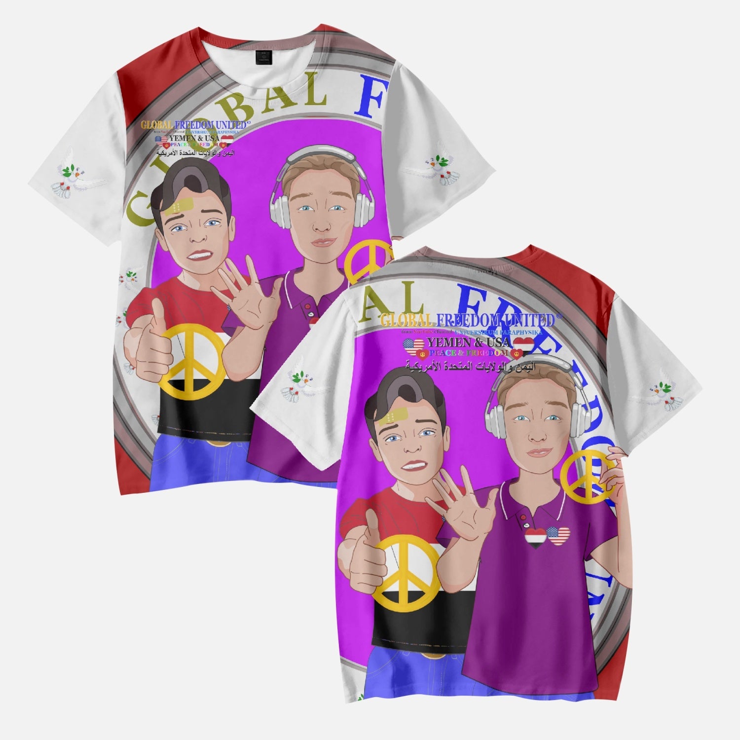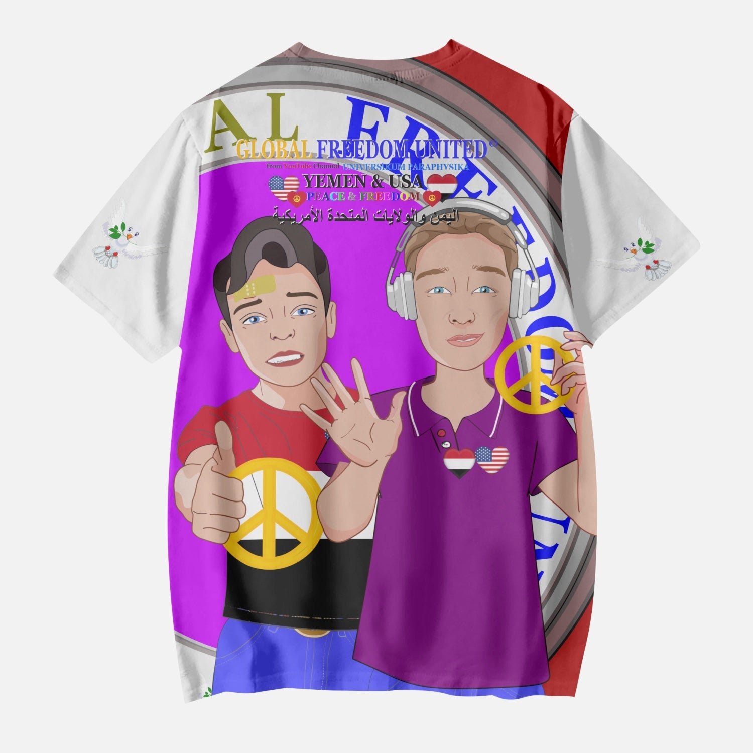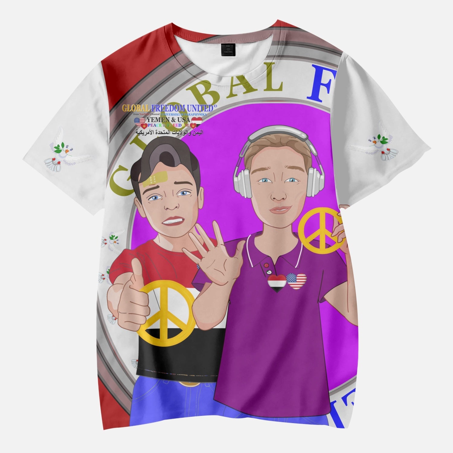 GLOBAL FREEDOM UNITED BOYS YEMEN & USA OLD PEACE RED AOP Kids' Short T-Shirts