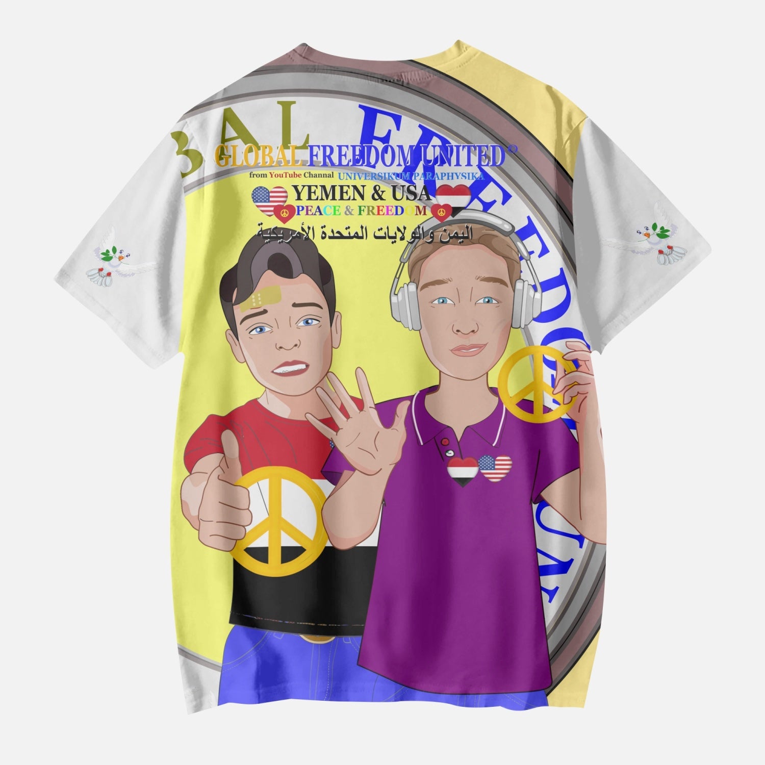 GLOBAL FREEDOM UNITED BOYS YEMEN & USA OLD PEACE YELLOW AOP Kids' Short T-Shirts