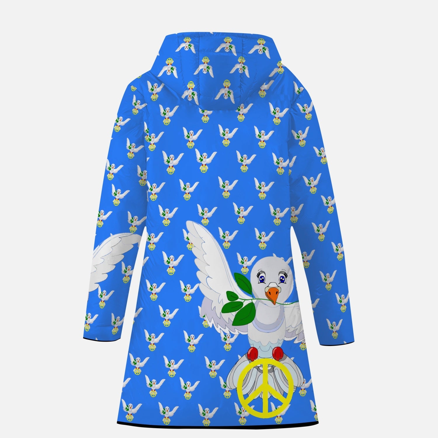 GLOBAL FREEDOM UNITED DOVE OF PEACE OLD PEACE BLUE Long Type Cotton-pad Zipper-up Hoodie