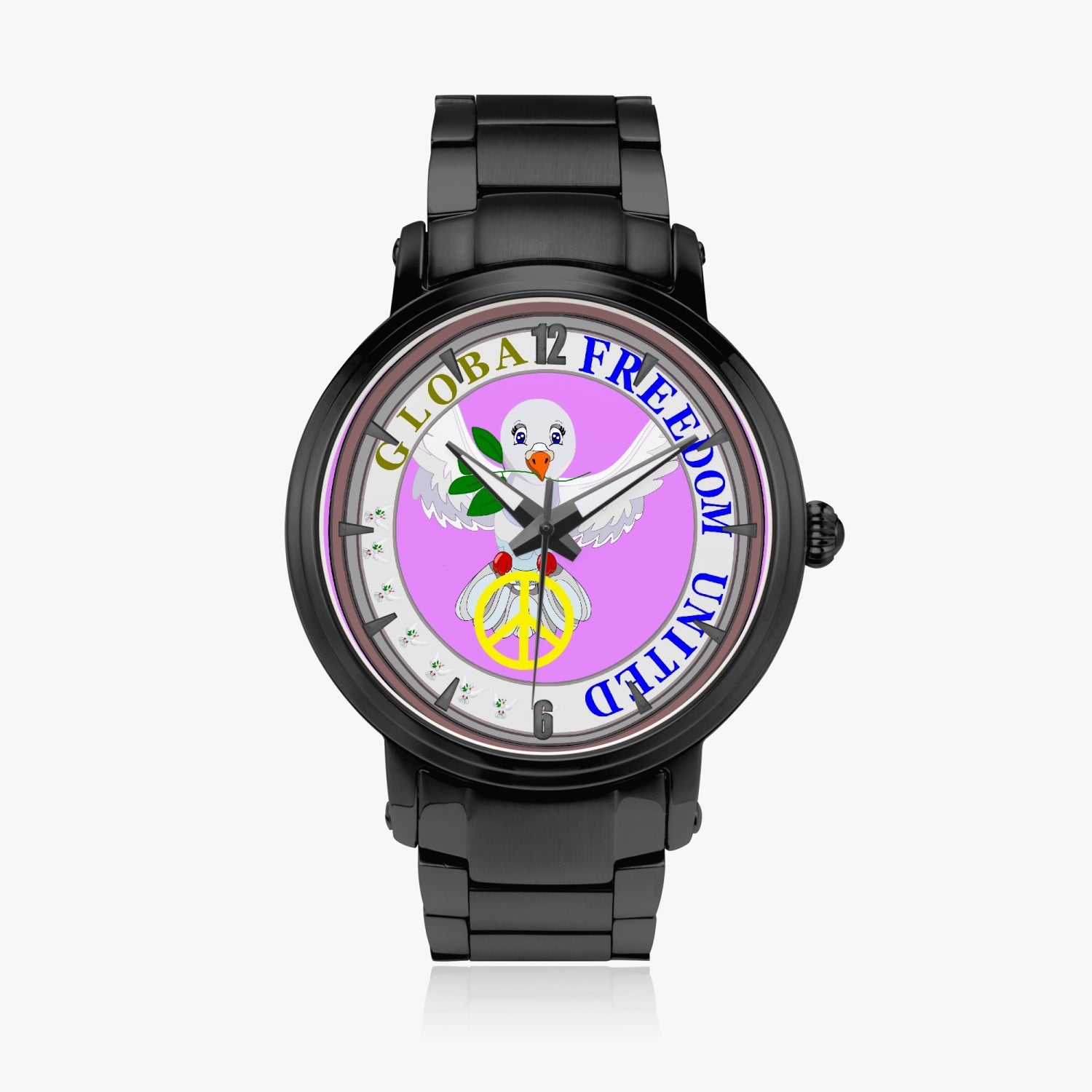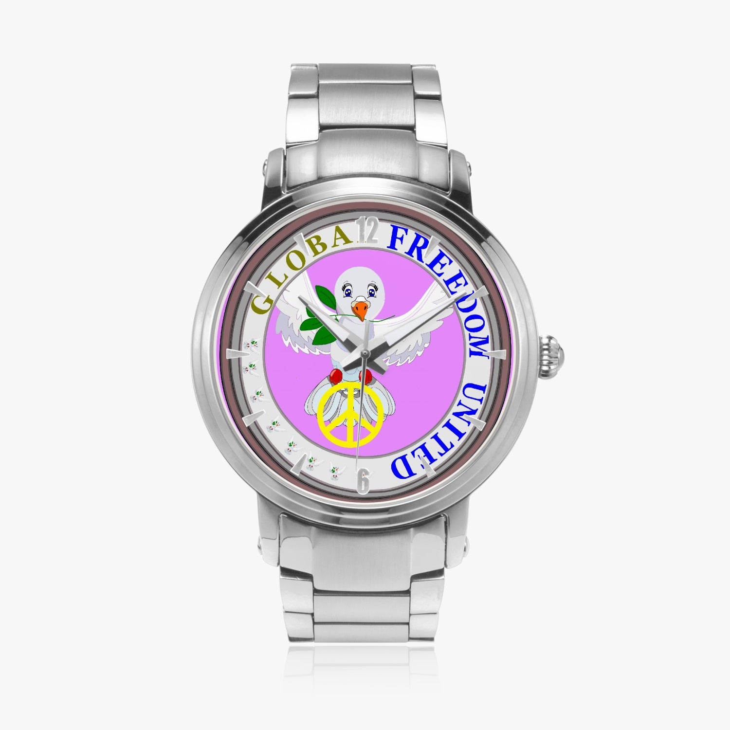 GLOBAL FREEDOM UNITED DOVE OF PEACE OLD PEACE FLIEDER New Steel Strap Automatic Watch (With Indicators)