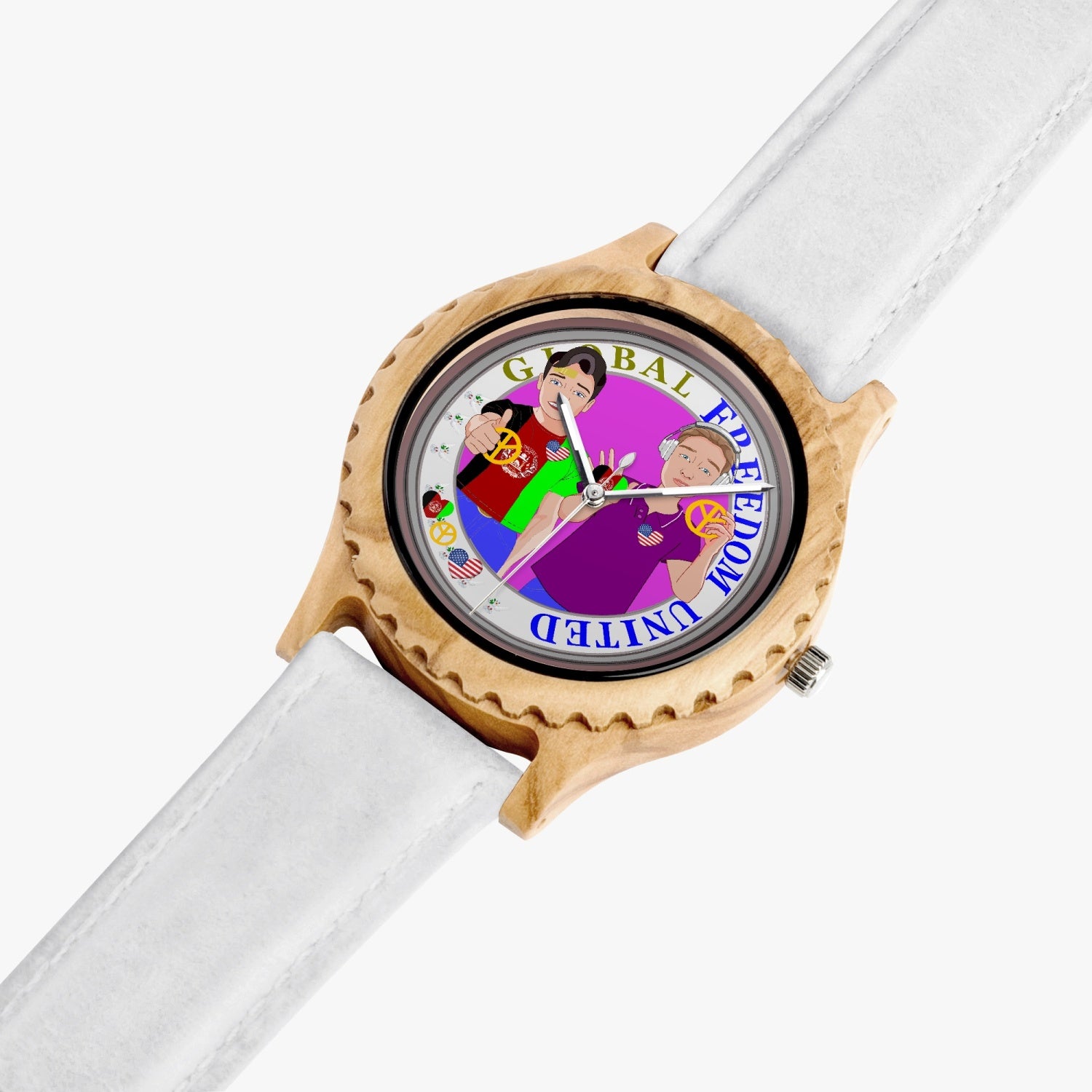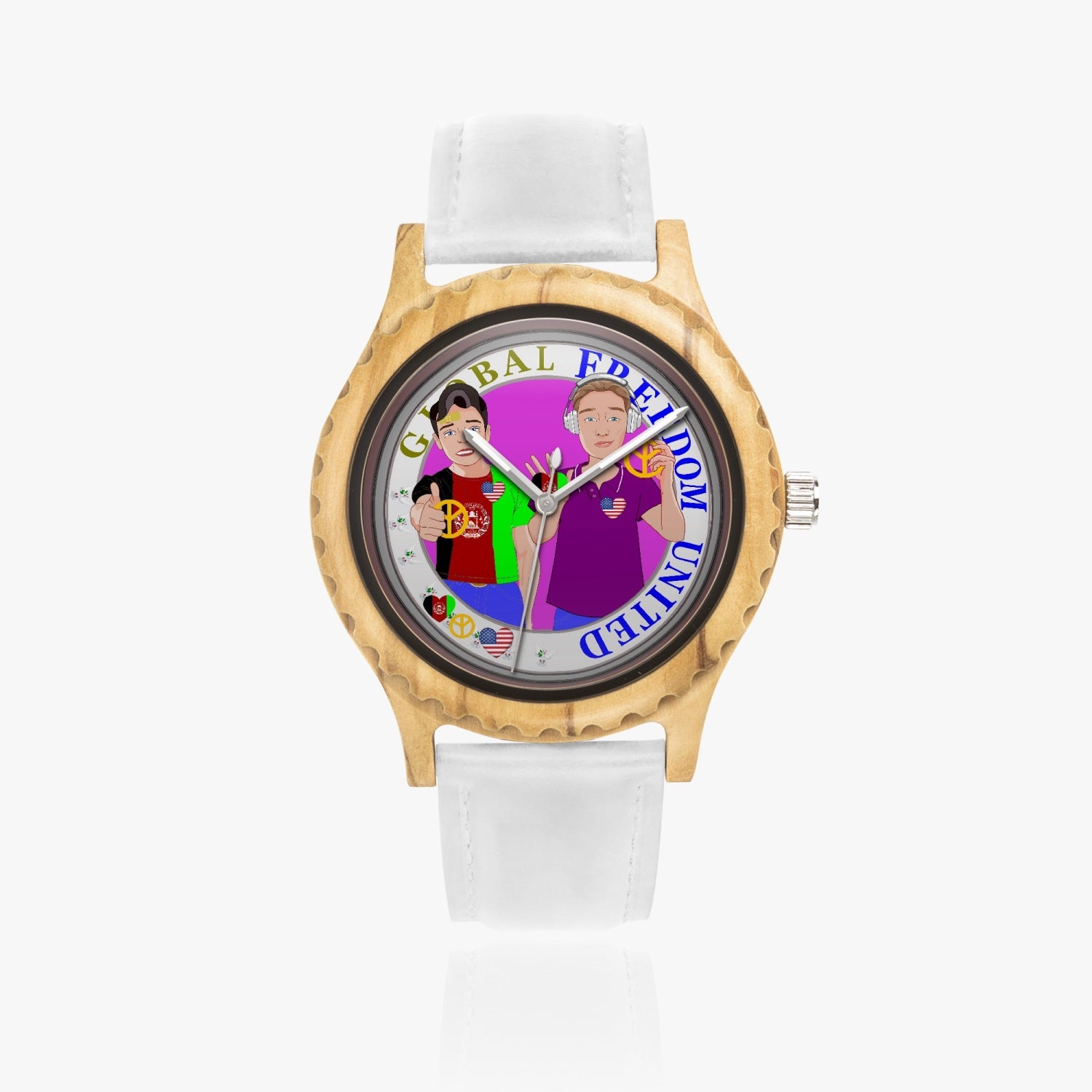 GLOBAL FREEDOM UNITED© Men AFGHANISTAN & USA - Italian Olive Lumber Wooden Watch - Leather Strap