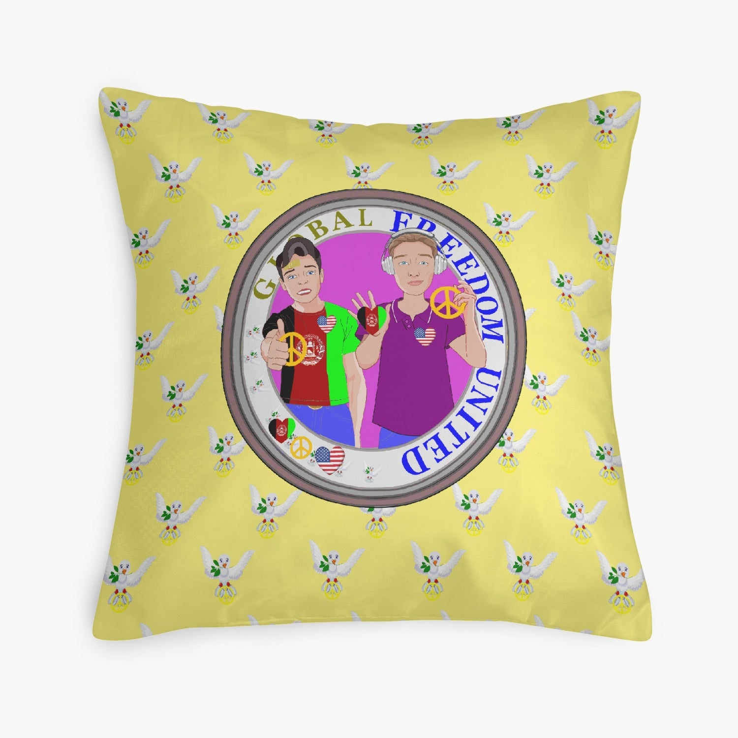 GLOBAL FREEDOM UNITED© Men AFGHANISTAN & USA YELLOW 18'' Square Pillow Cover