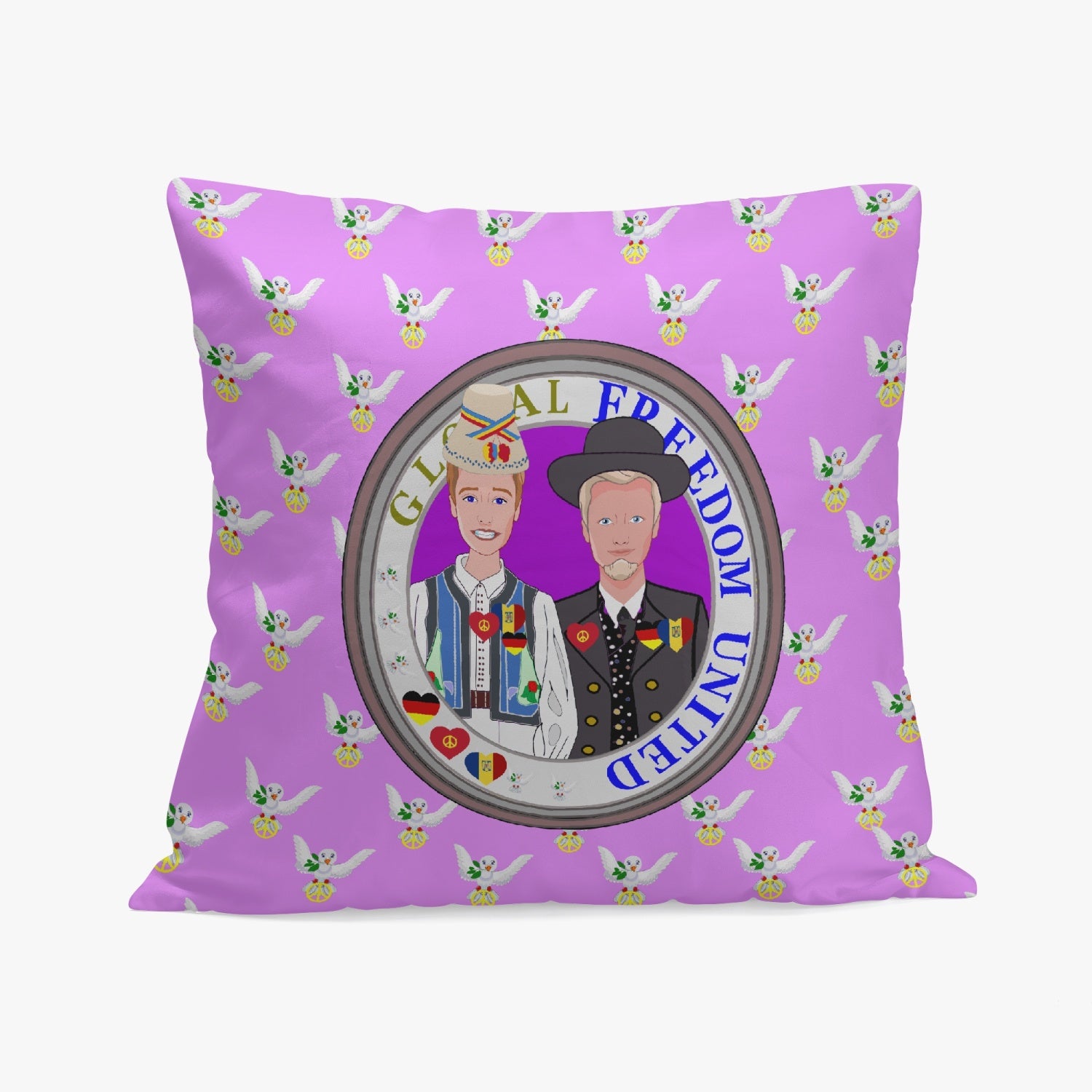 GLOBAL FREEDOM UNITED© Men GERMANY & ROMANIA Lilac 18'' Square Pillow Cover