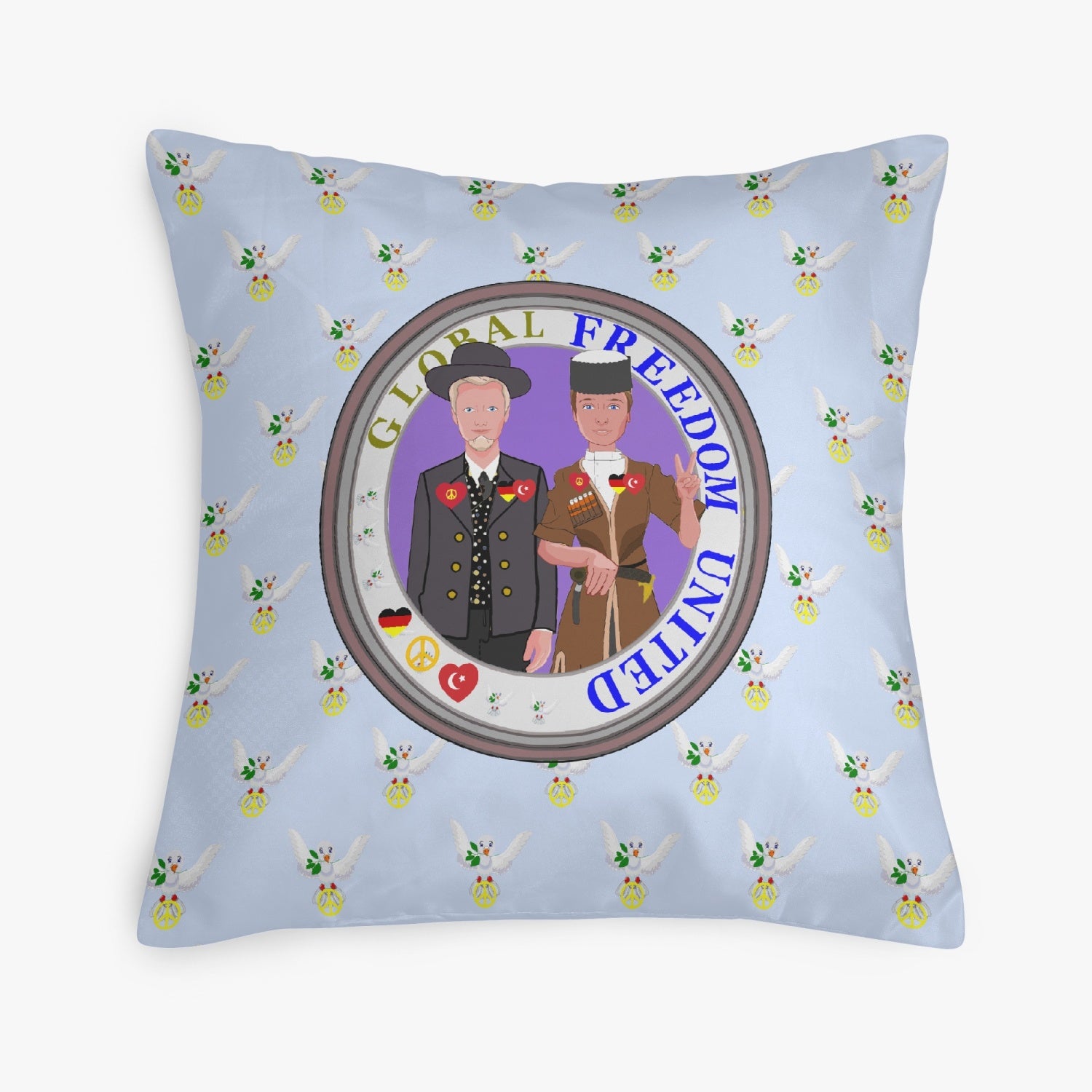 GLOBAL FREEDOM UNITED© Men GERMANY & TURKEY Light Blue 18'' Square Pillow Cover