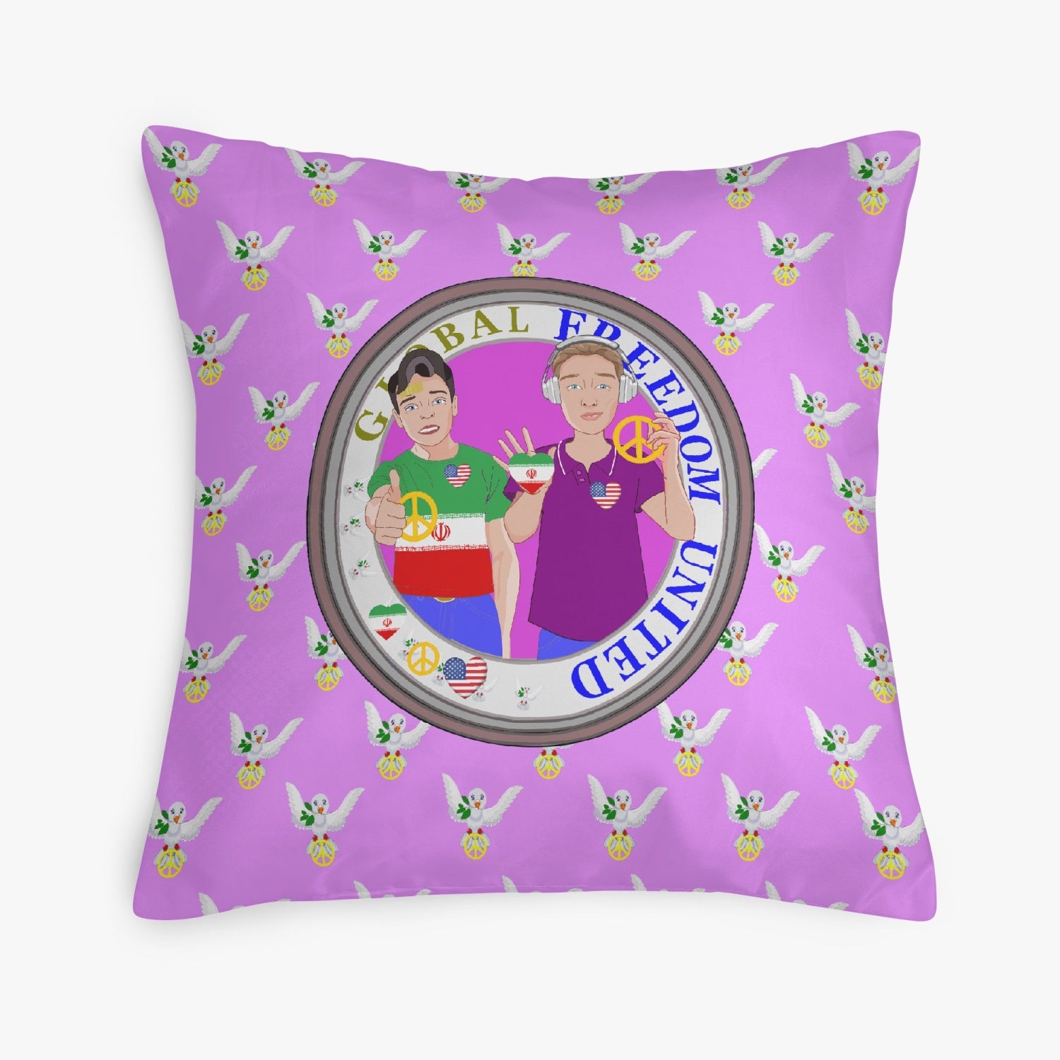 GLOBAL FREEDOM UNITED© Men IRAN & USA LILAC 18'' Square Pillow Cover