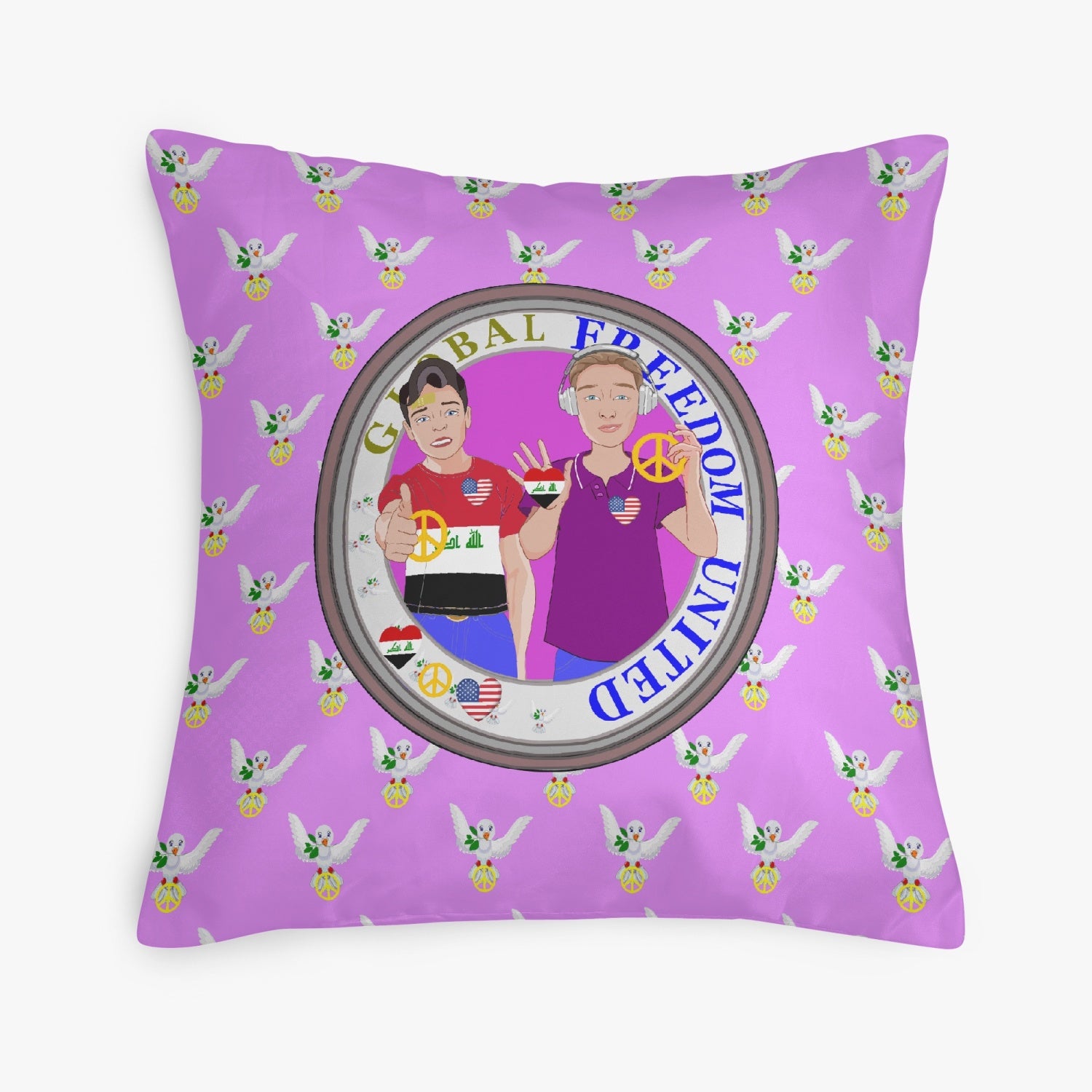 GLOBAL FREEDOM UNITED© Men IRAQ & USA LILAC 18'' Square Pillow Cover