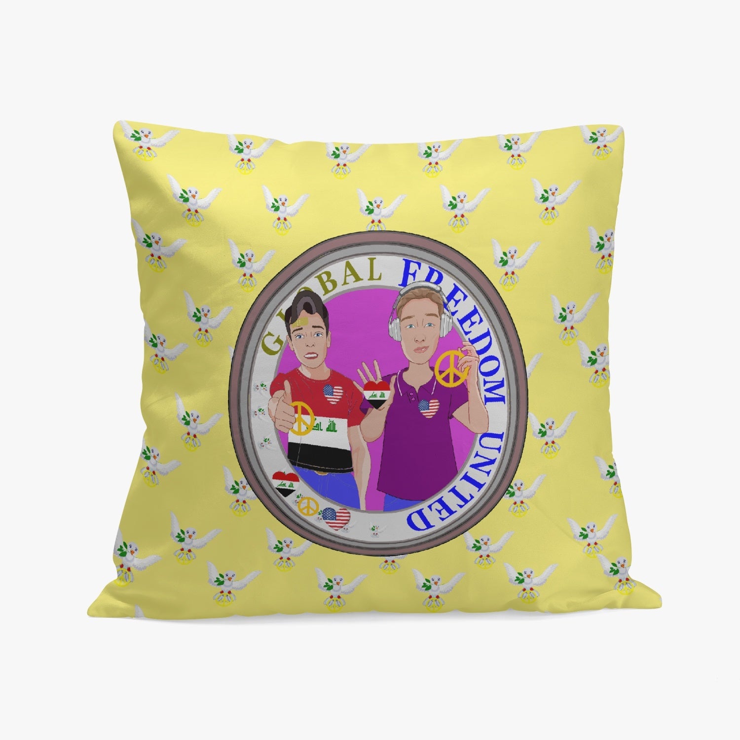 GLOBAL FREEDOM UNITED© Men IRAQ & USA YELLOW 18'' Square Pillow Cover