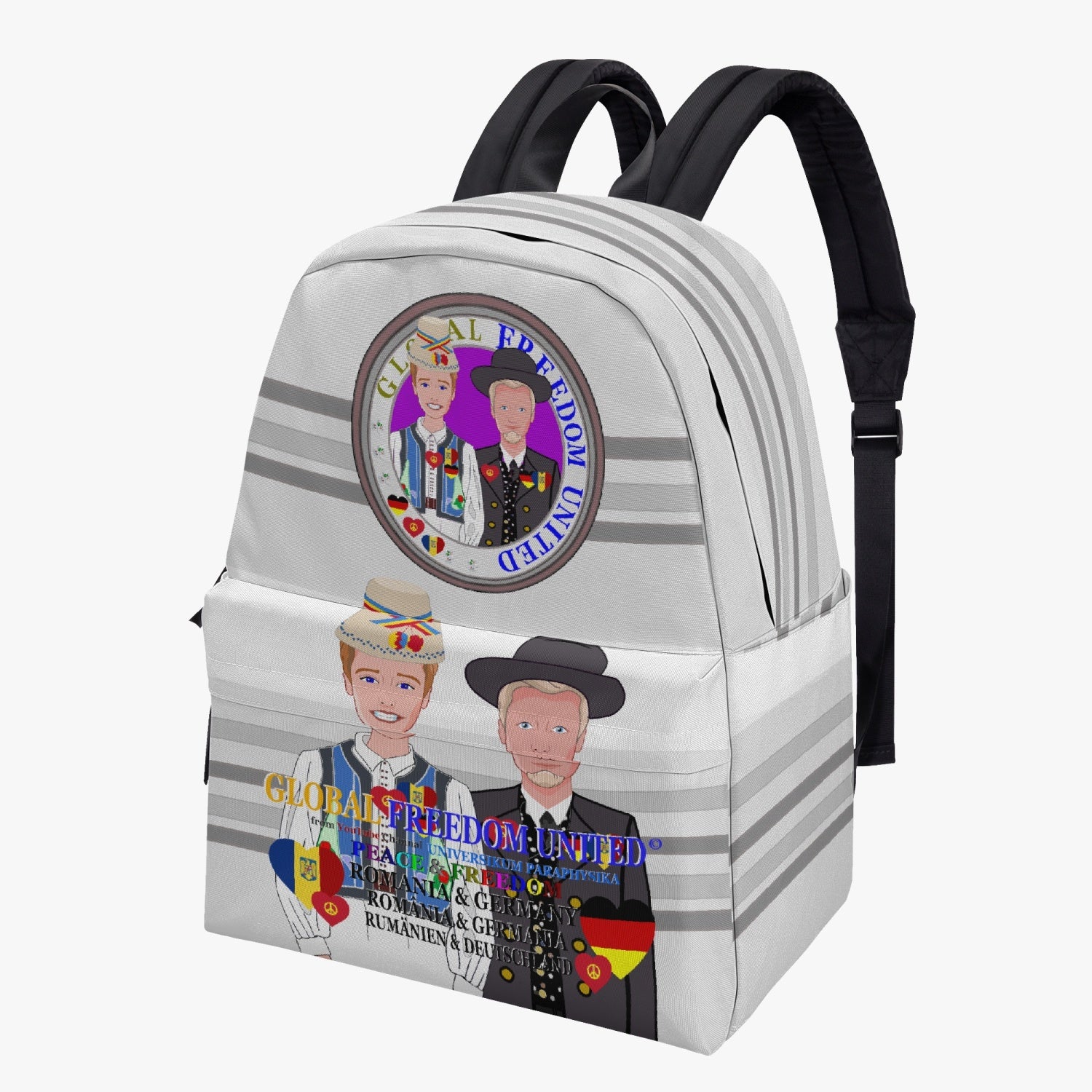 GLOBAL FREEDOM UNITED MEN ROMANIA & GERMANY OLD PEACE GREY All-over-print Canvas Backpack