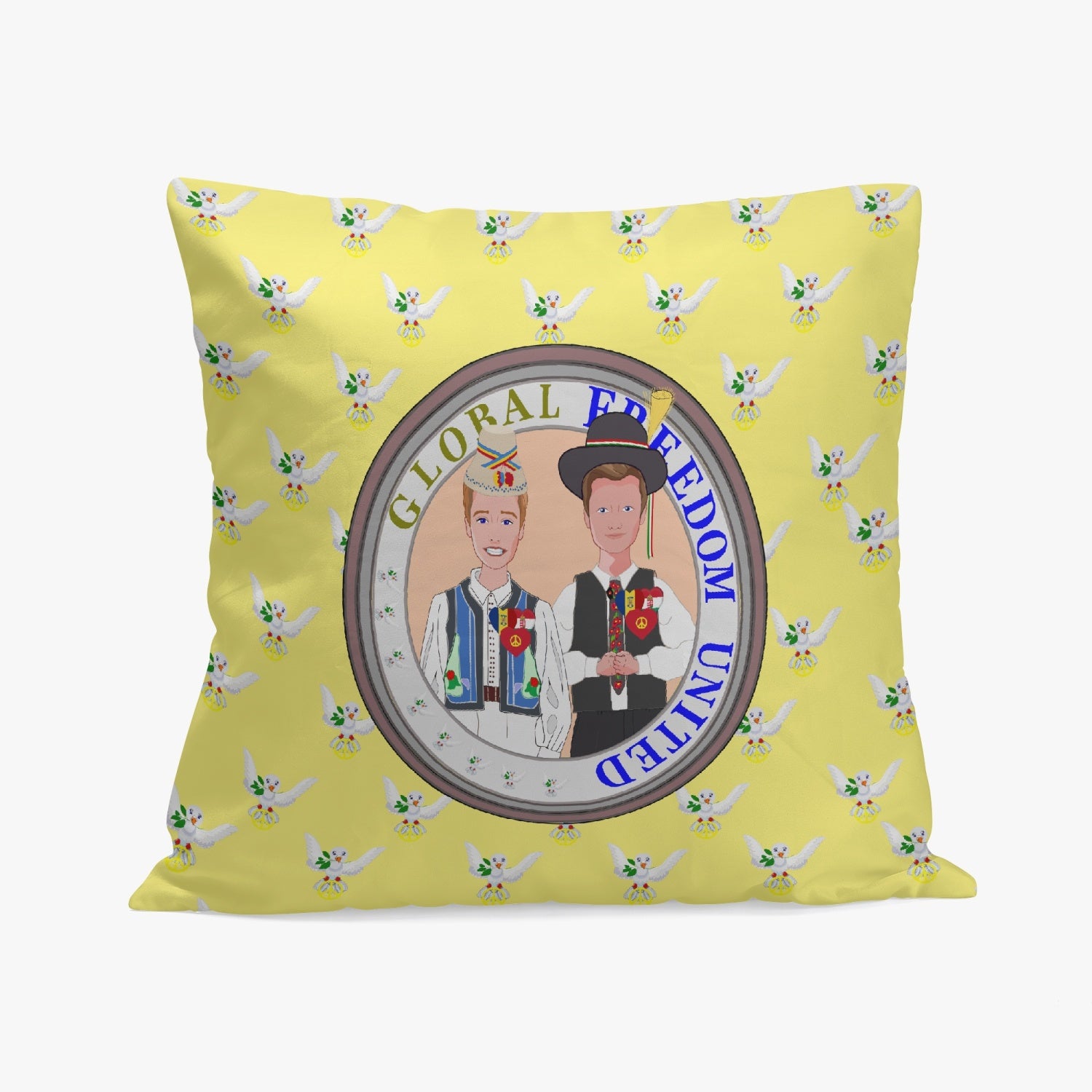 GLOBAL FREEDOM UNITED© Men ROMANIA & HUNGARY Yellow 18'' Square Pillow Cover