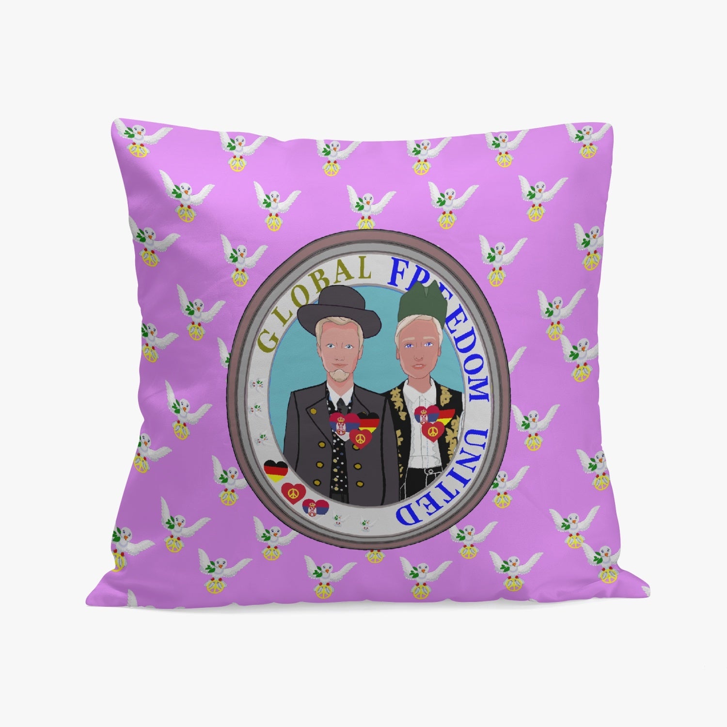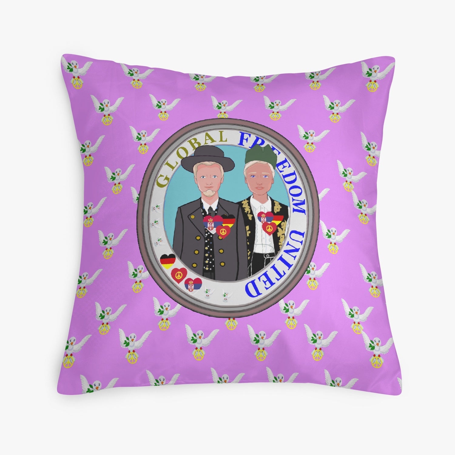 GLOBAL FREEDOM UNITED© Men SERBIA & GERMANY LILAC 18'' Square Pillow Cover