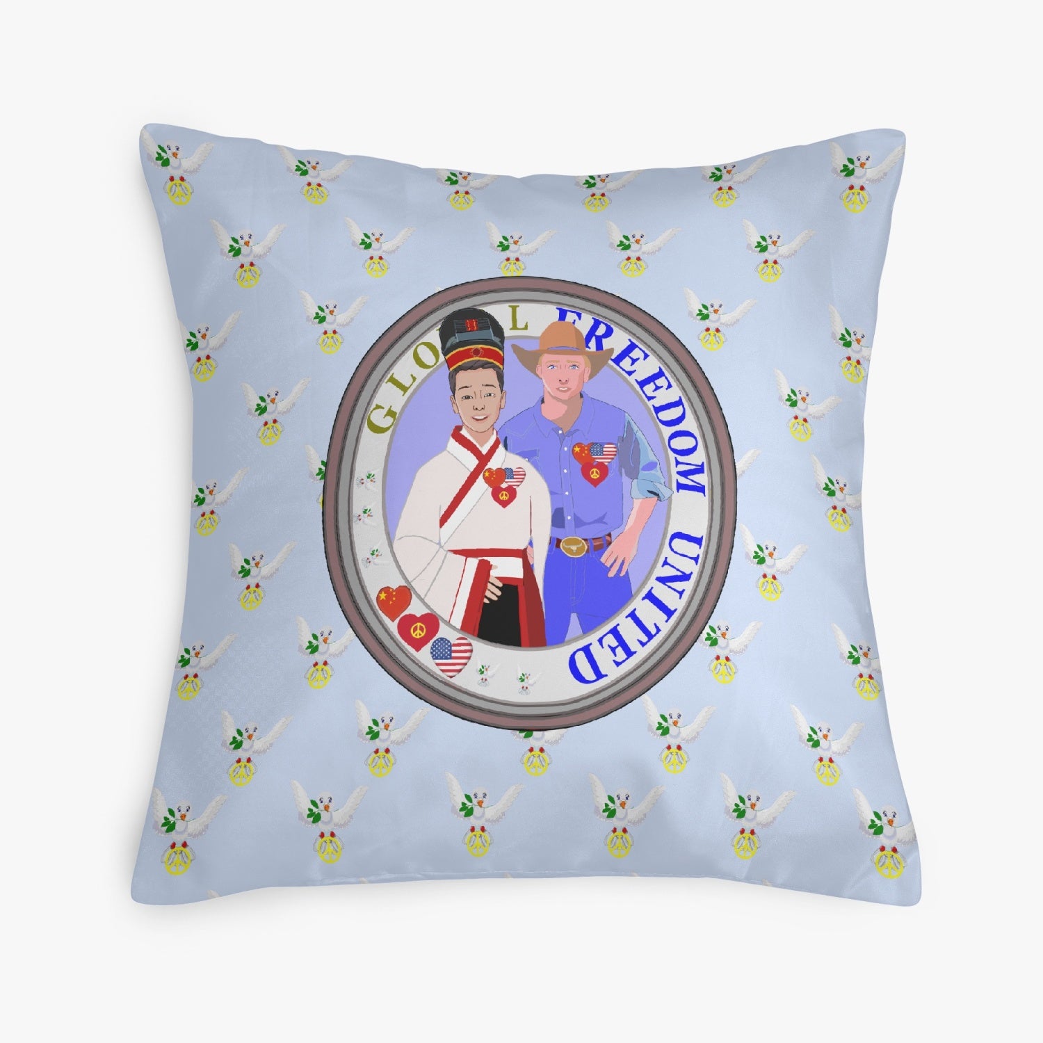 GLOBAL FREEDOM UNITED© Men USA & CHINA Light Blue 18'' Square Pillow Cover
