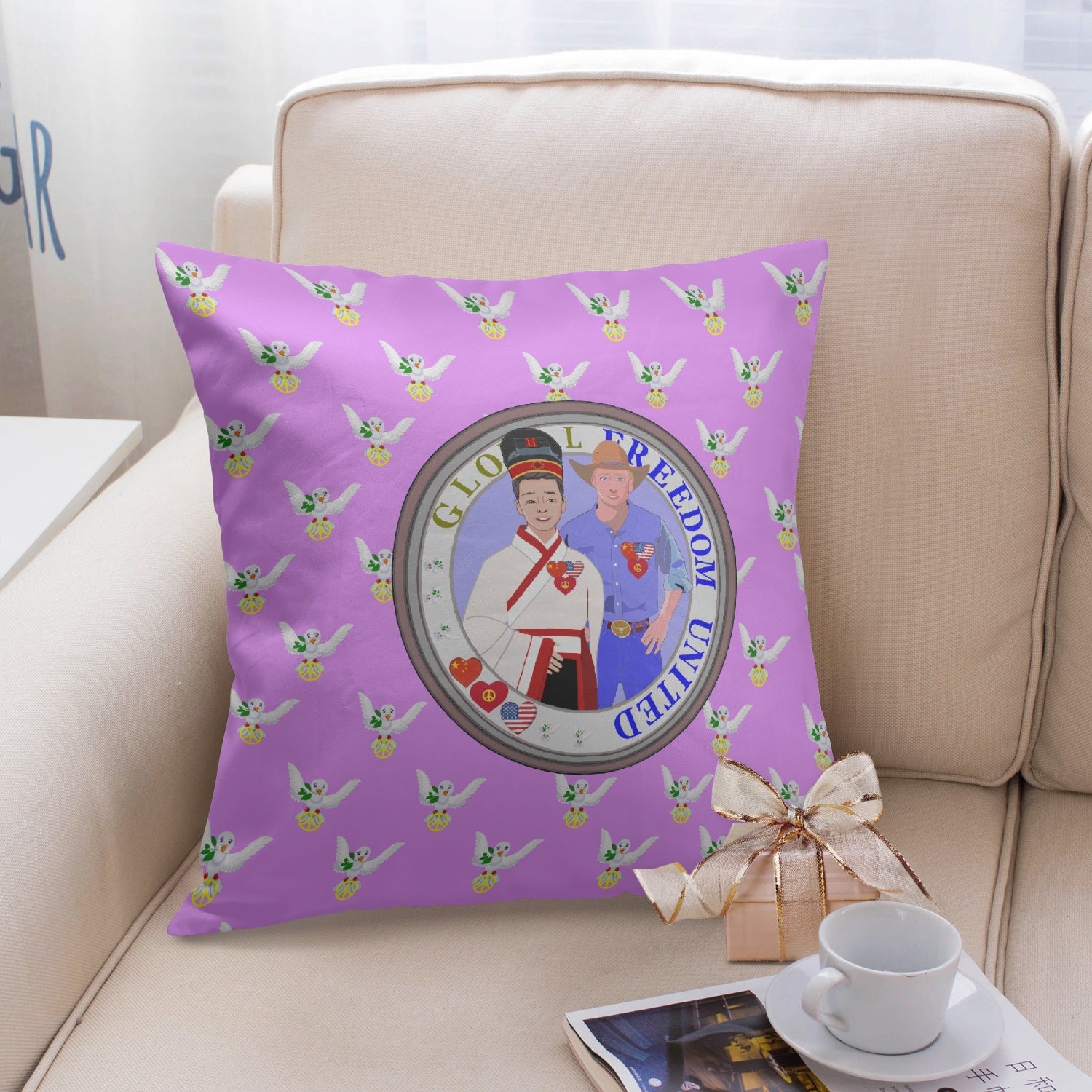 GLOBAL FREEDOM UNITED© Men USA & CHINA Lilac 8'' Square Pillow Cover