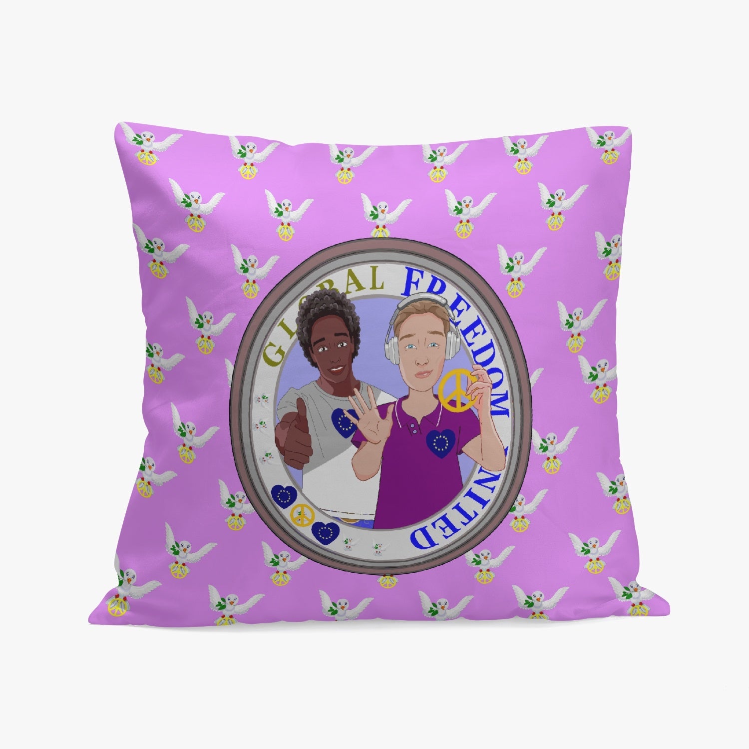 GLOBAL FREEDOM UNITED© Men Anti Fascism & Racism Lilac EU 18'' Square Pillow Cover