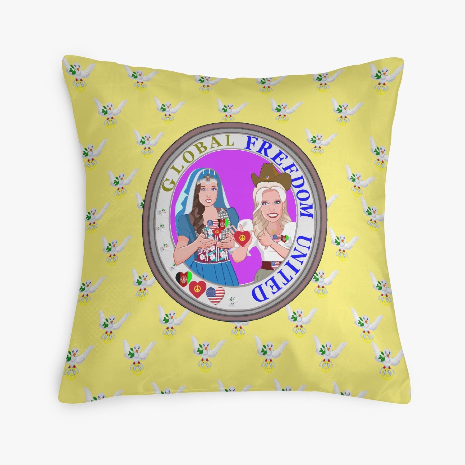 GLOBAL FREEDOM UNITED© Women AFGHANISTAN & USA YELLOW 18'' Square Pillow Cover