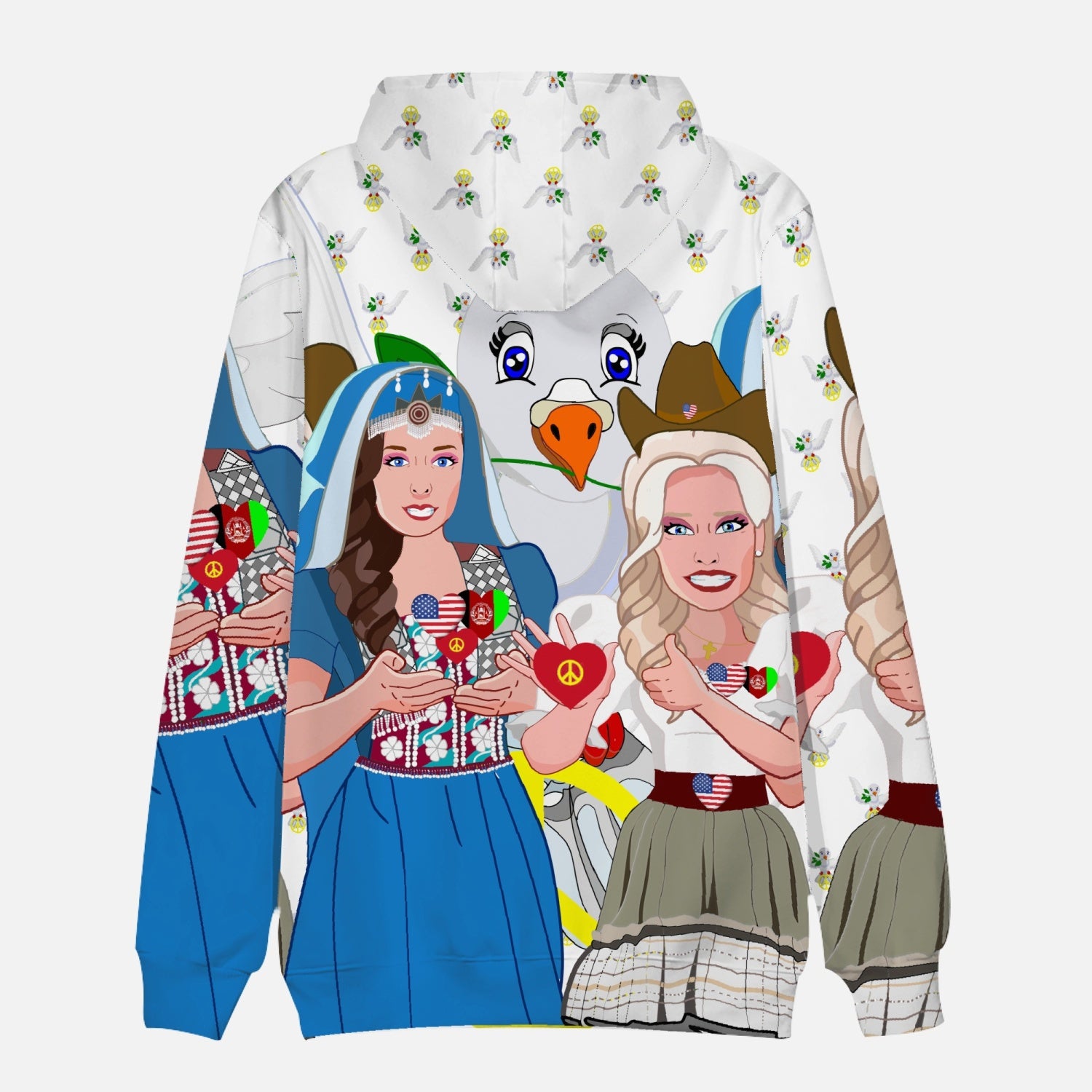 Women´s T-Shirt 3 GLOBAL FREEDOM UNITED© Women AFGHANISTAN & USA WIGHT Round Collar Hoodie