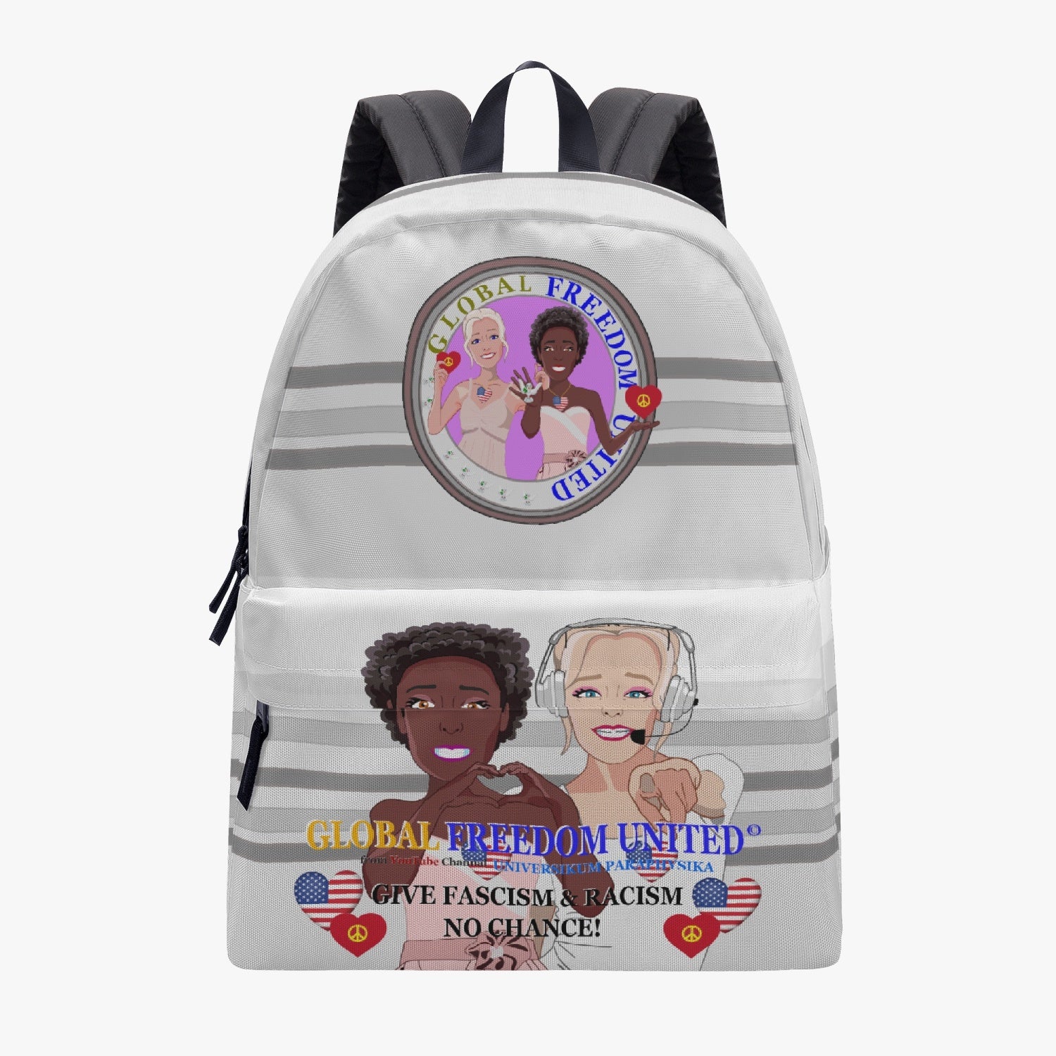 GLOBAL FREEDOM UNITED WOMEN ANTI FASCISM & RACISM OLD PEACE GREY All-over-print Canvas Backpack