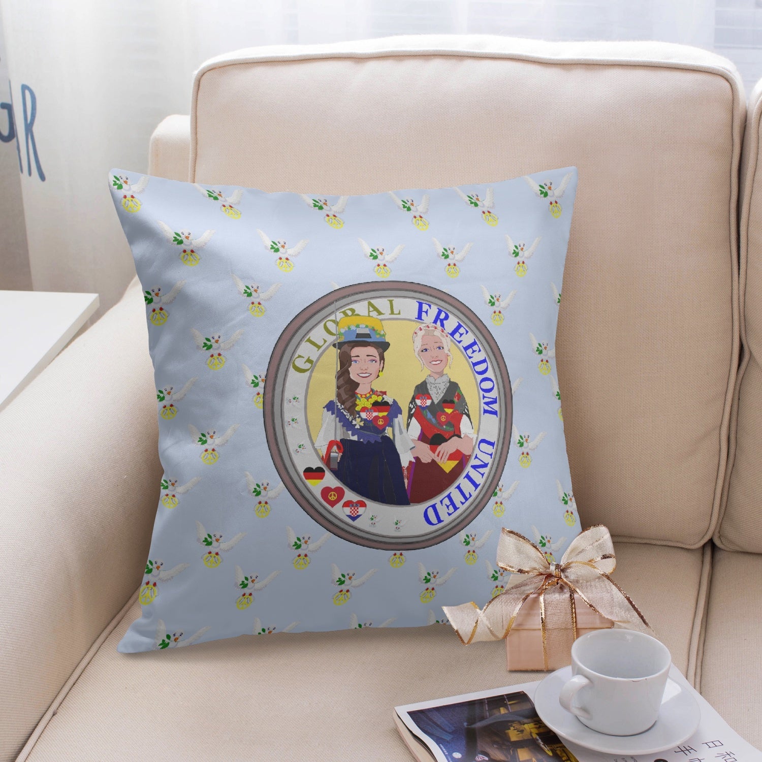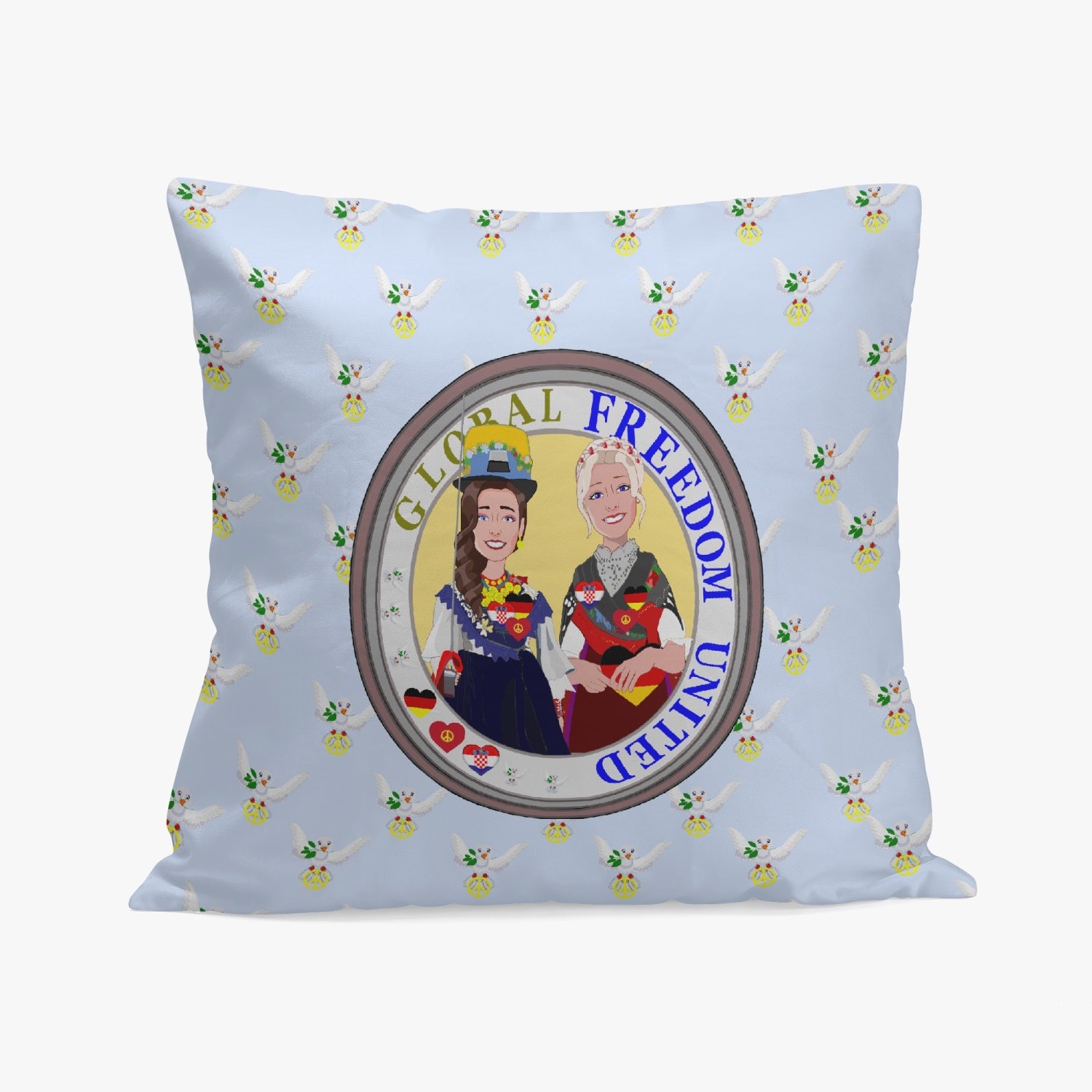 GLOBAL FREEDOM UNITED© Women CROATIA & GERMANY LIGHT BLUE 18'' Square Pillow Cover