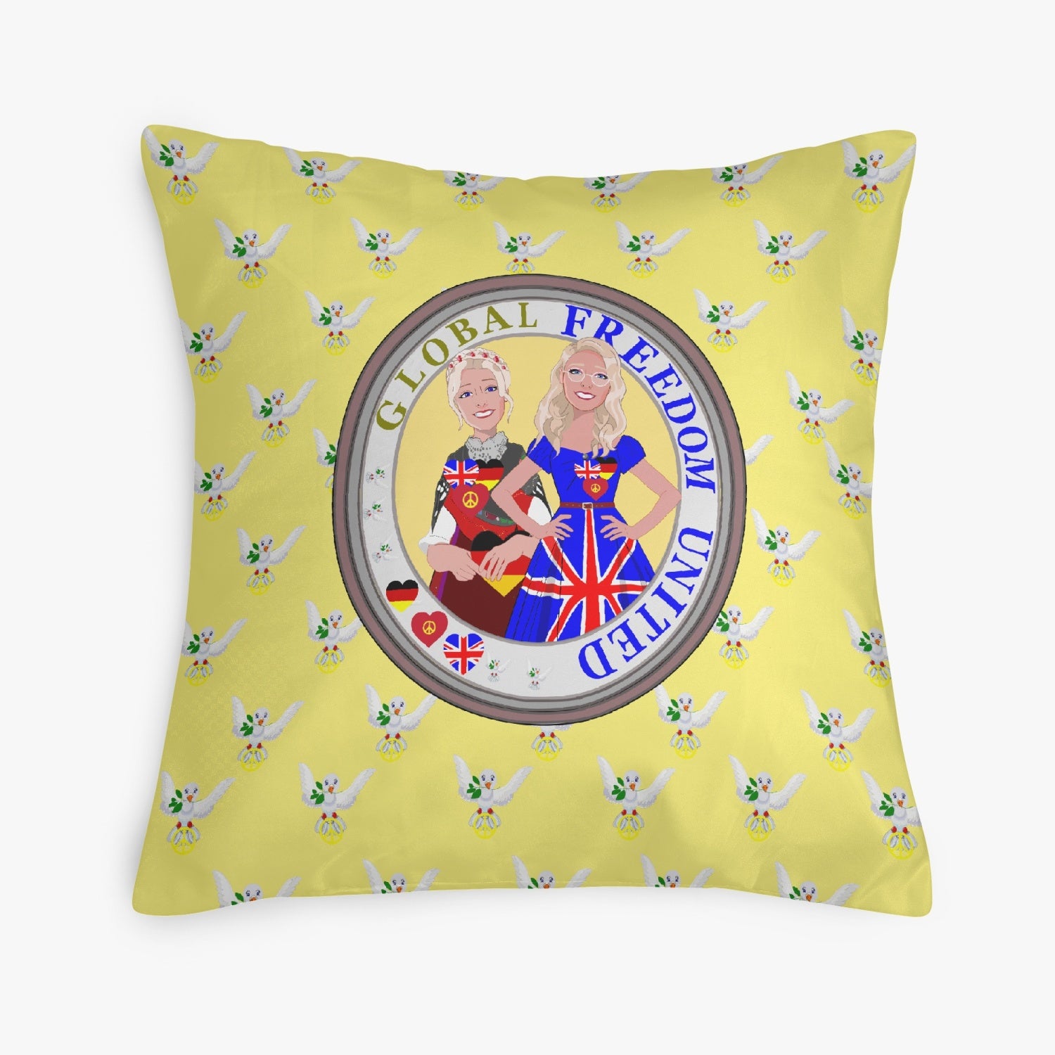 GLOBAL FREEDOM UNITED© Women ENGLAND & GERMANY Yellow 18'' Square Pillow Cover