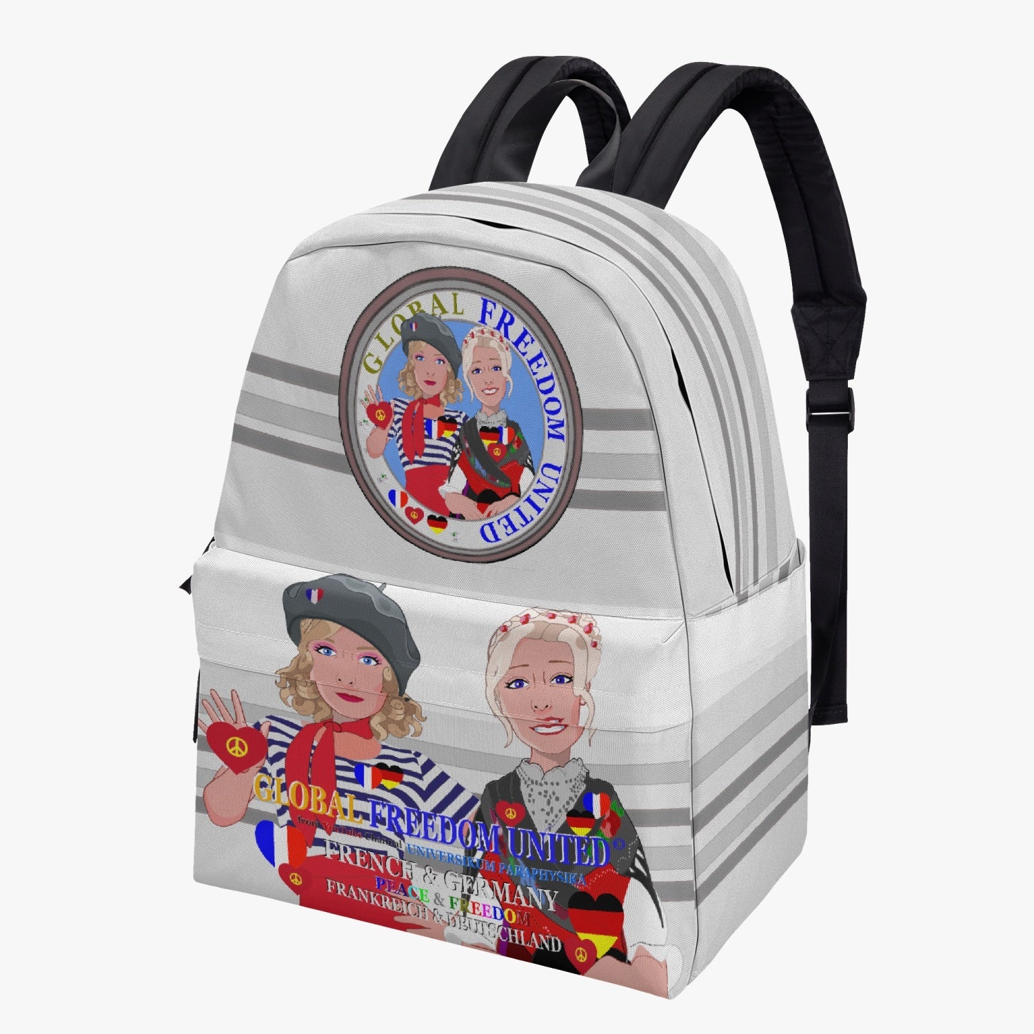 GLOBAL FREEDOM UNITED WOMEN FRENCH & GERMANY OLD PEACE GREY All-over-print Canvas Backpack
