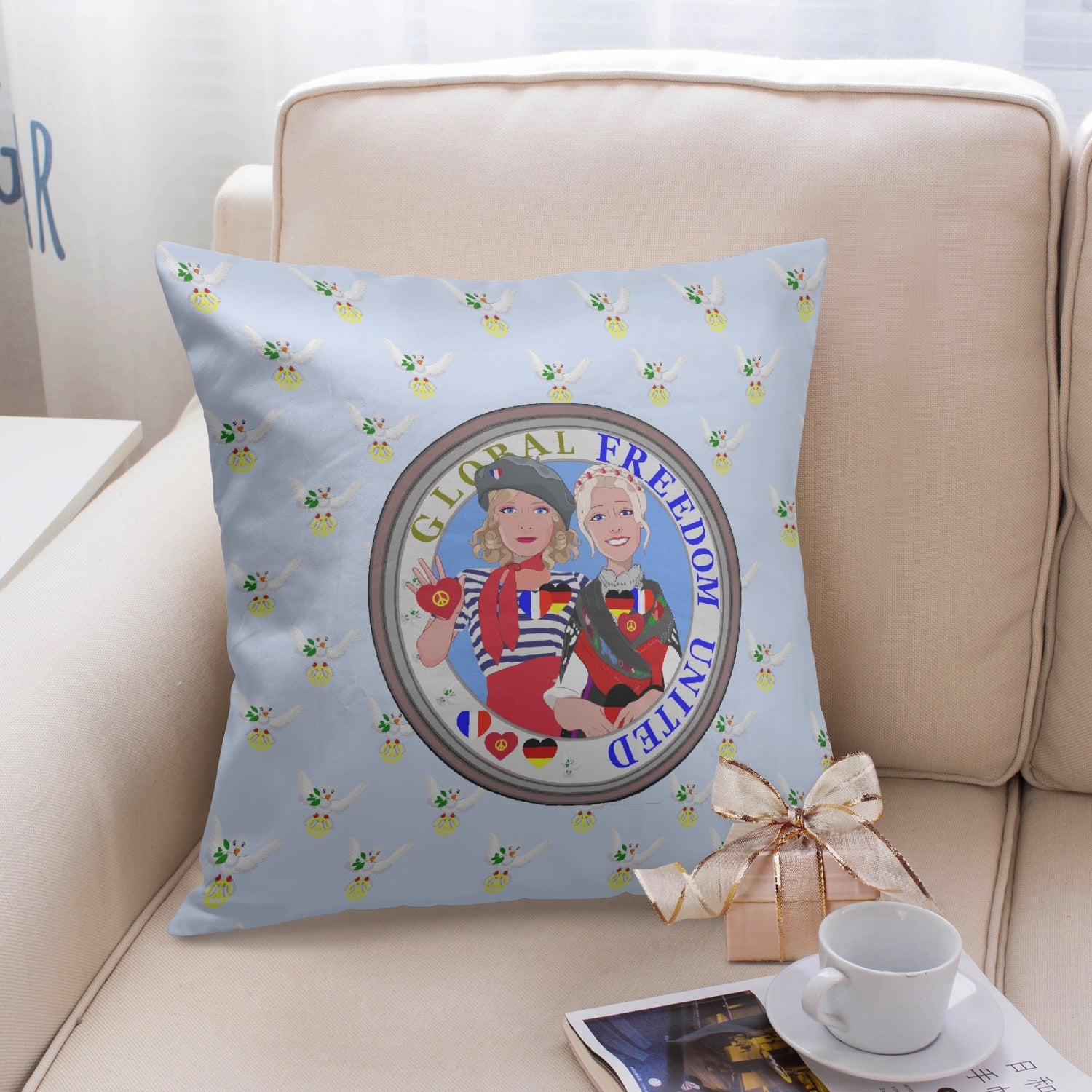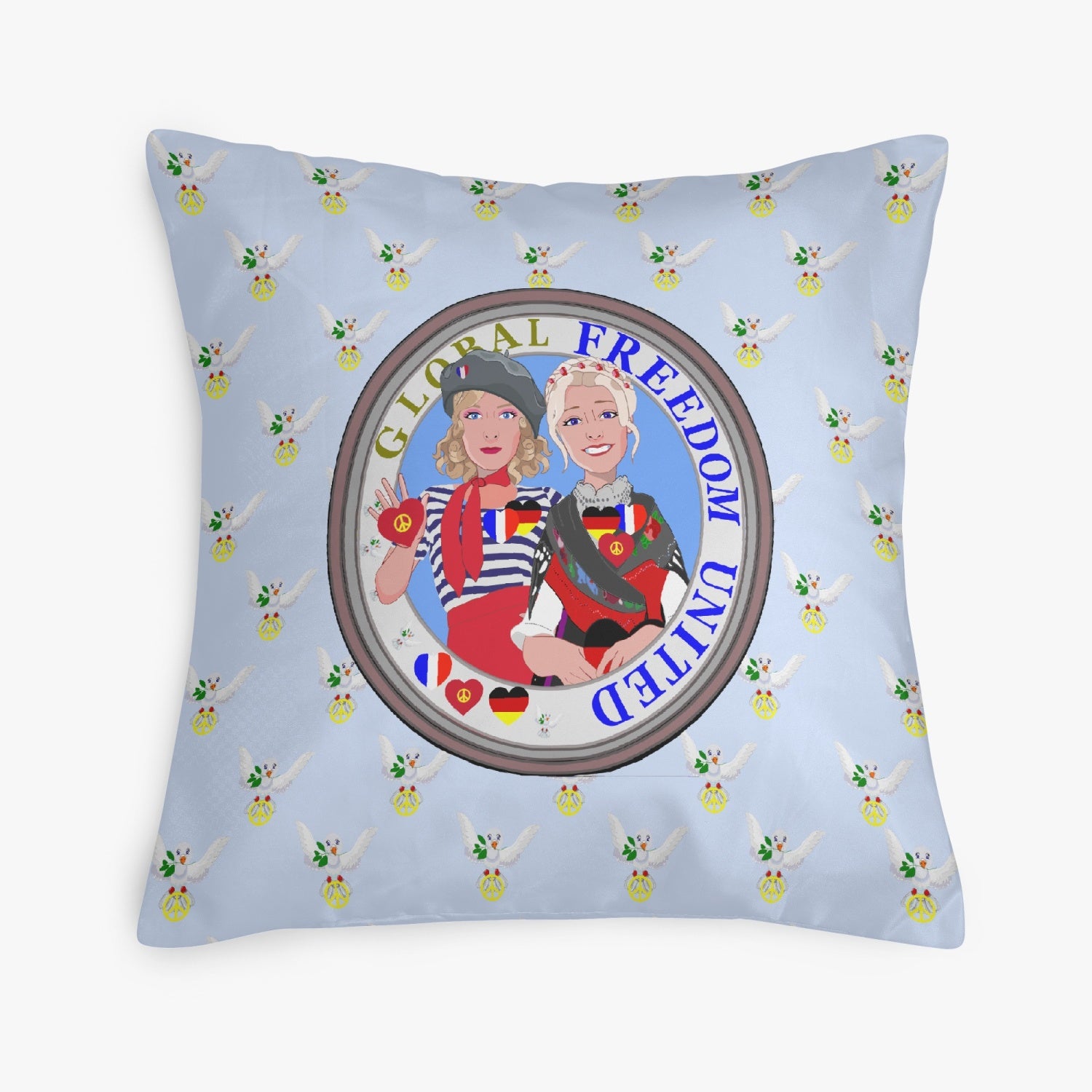 GLOBAL FREEDOM UNITED© Women FRENCH & GERMANY Light Blue 18'' Square Pillow Cover