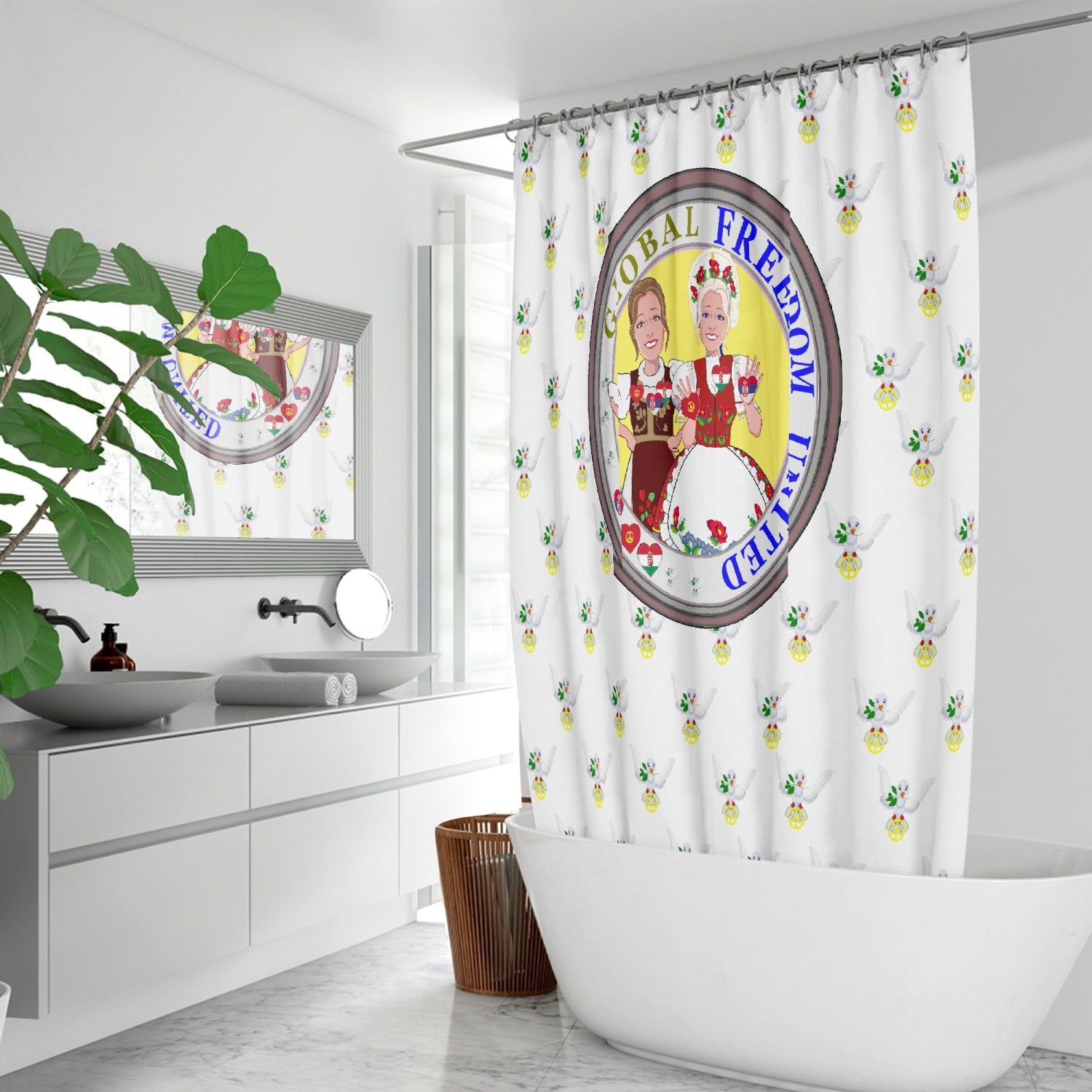 GLOBAL FREEDOM UNITED© WOMEN HUNGARY & SERBIA OLD PEACE WIGHT Quick-drying Shower Curtain