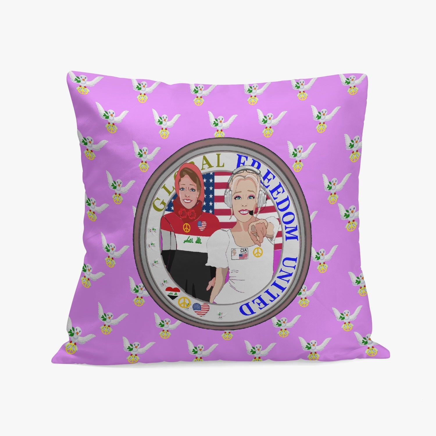 GLOBAL FREEDOM UNITED© Women IRAQ & USA LILAC 18'' Square Pillow Cover