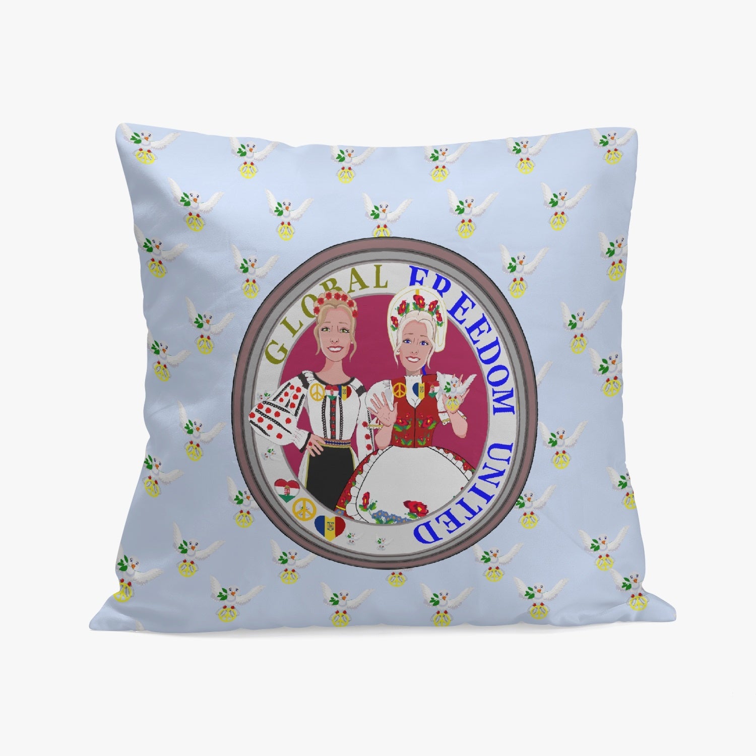 GLOBAL FREEDOM UNITED© Women ROMANIA & HUNGARY Light Blue V2 18'' Square Pillow Cover