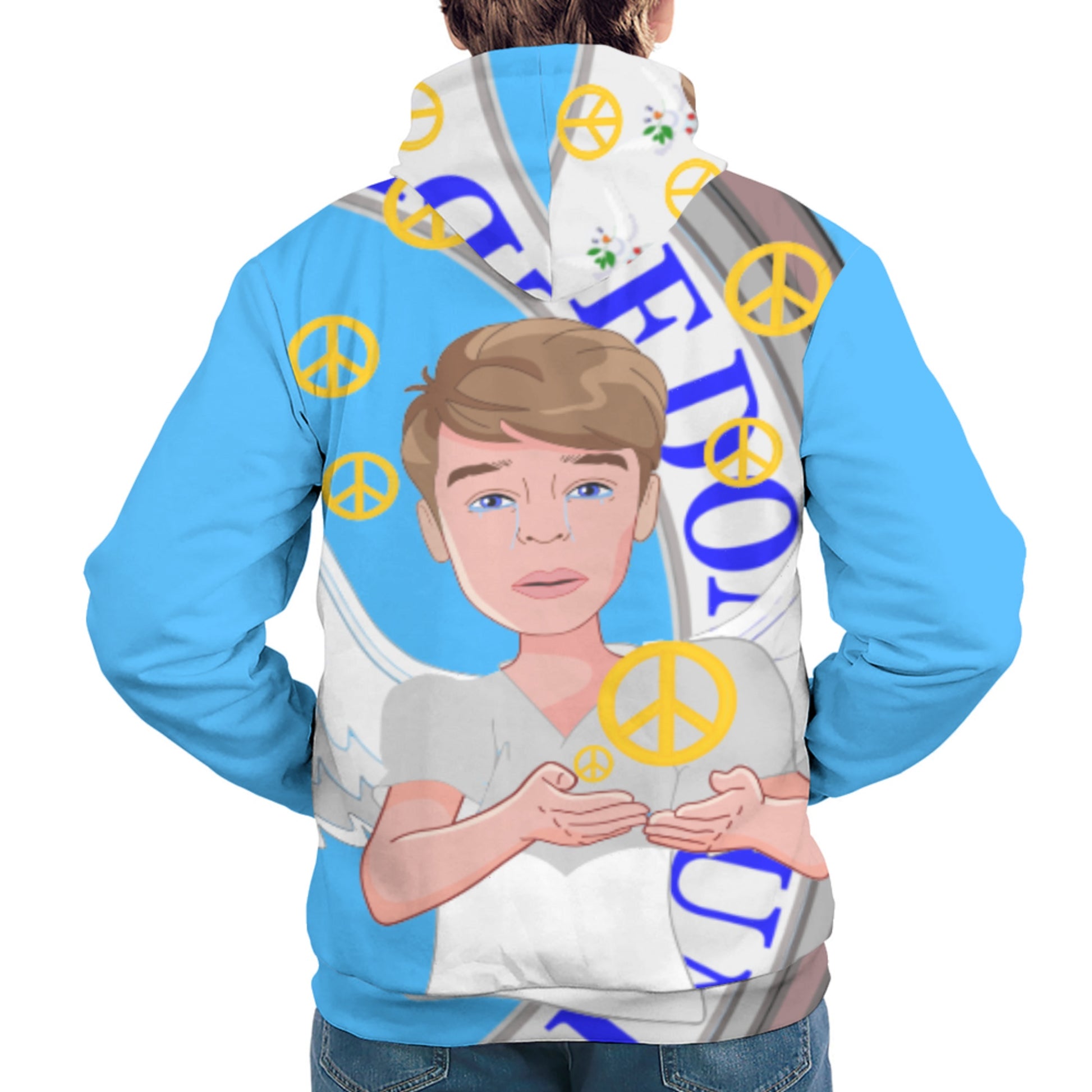 Hoodie Global Freedom United Men Angel Of Peace Old Peace Blue