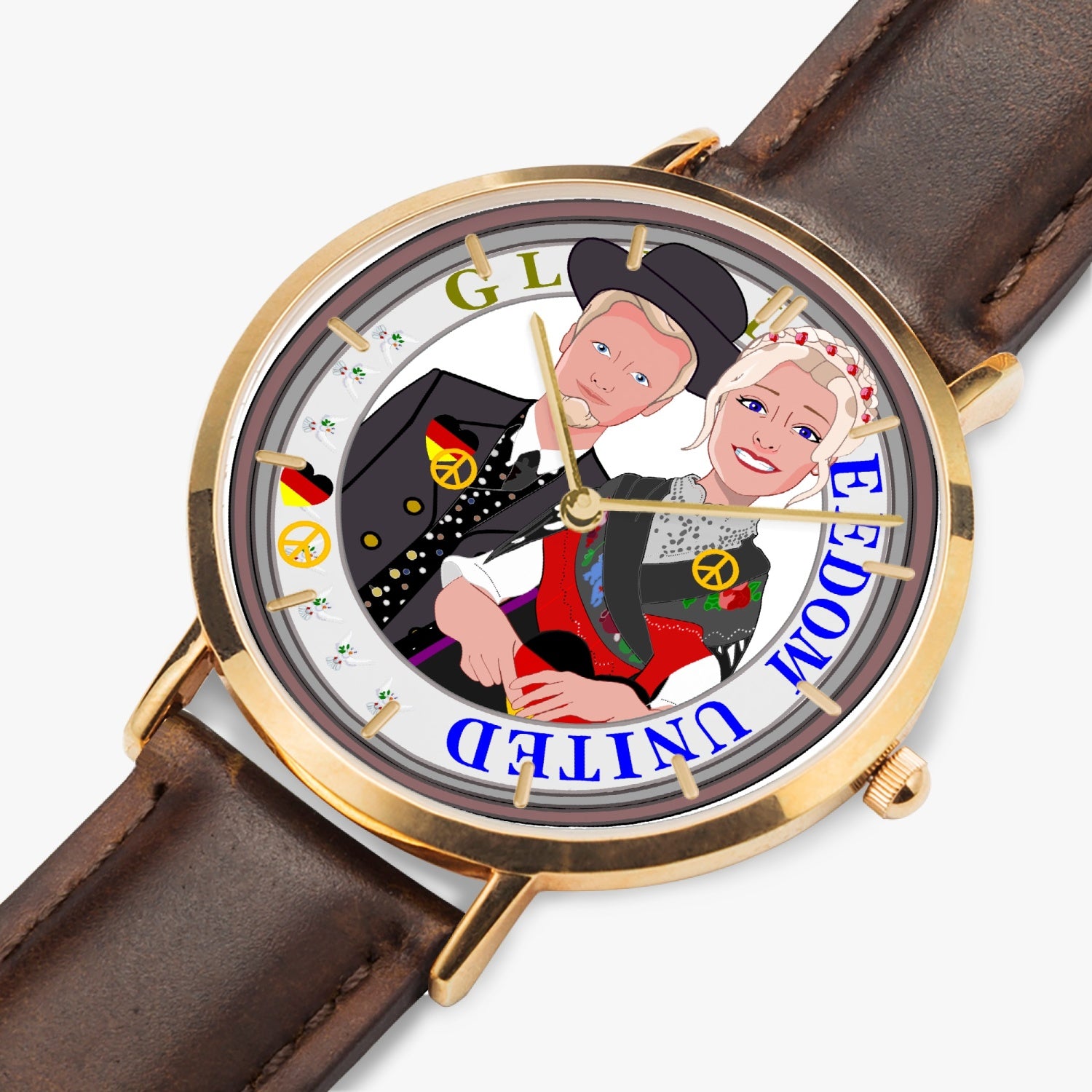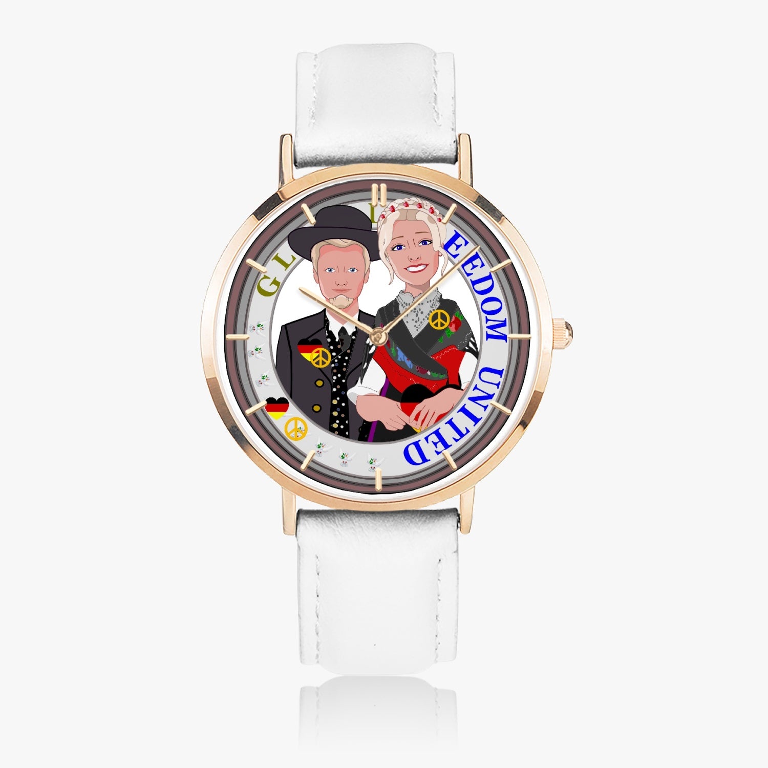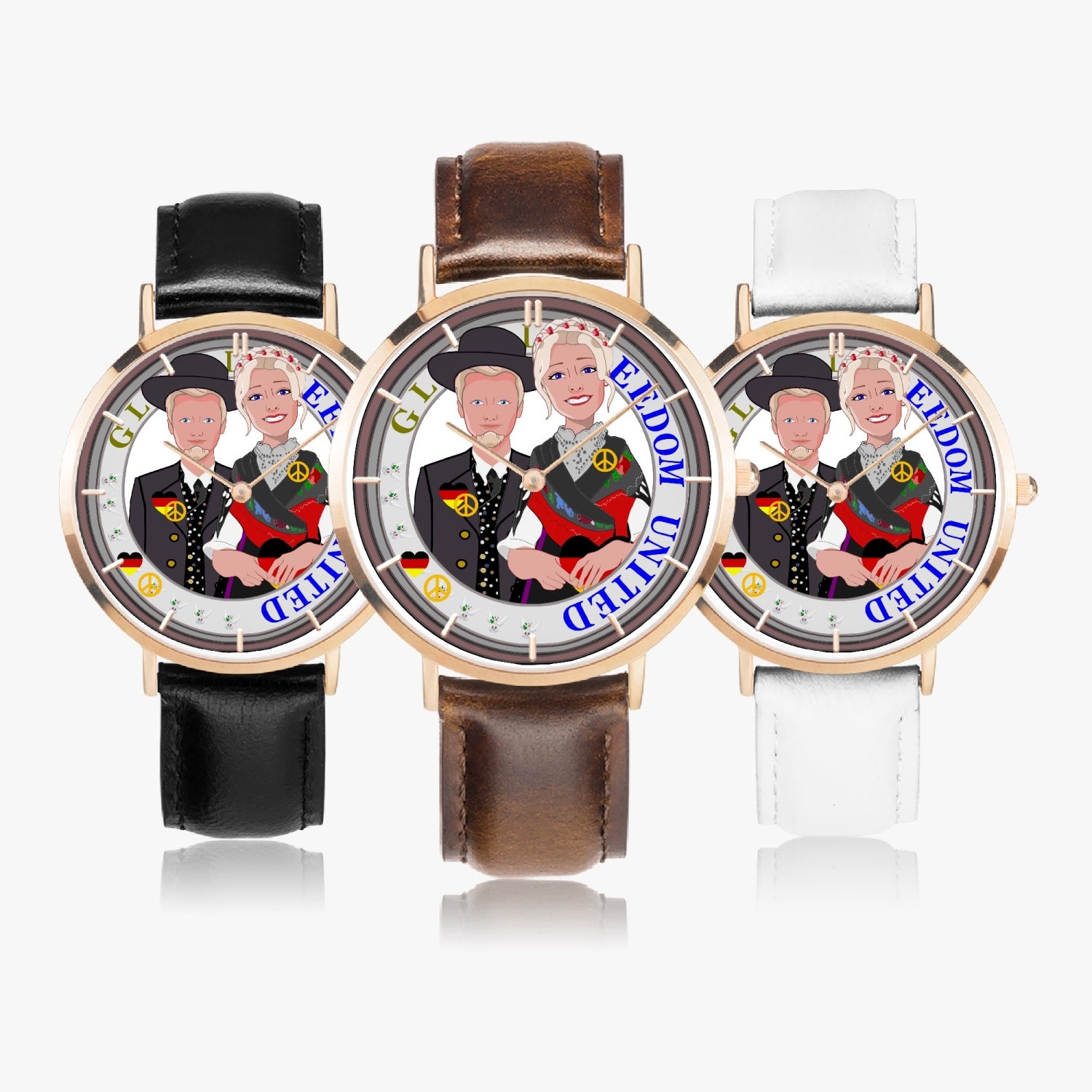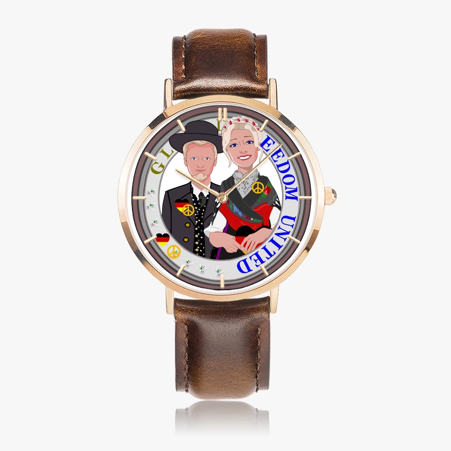 Hot Selling Ultra-Thin Leather Strap Quartz Watch (Rose Gold With Indicators) GLOBAL FREEDOM UNITED© COUPLE GERMANY TRADITION
