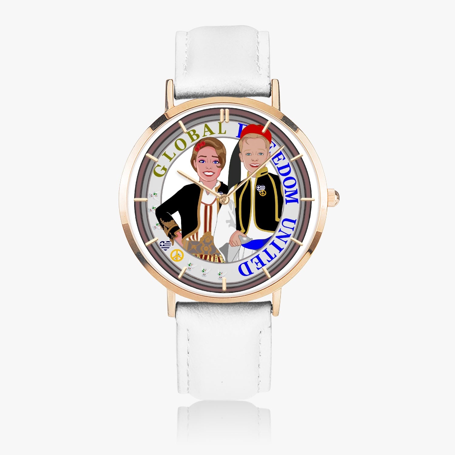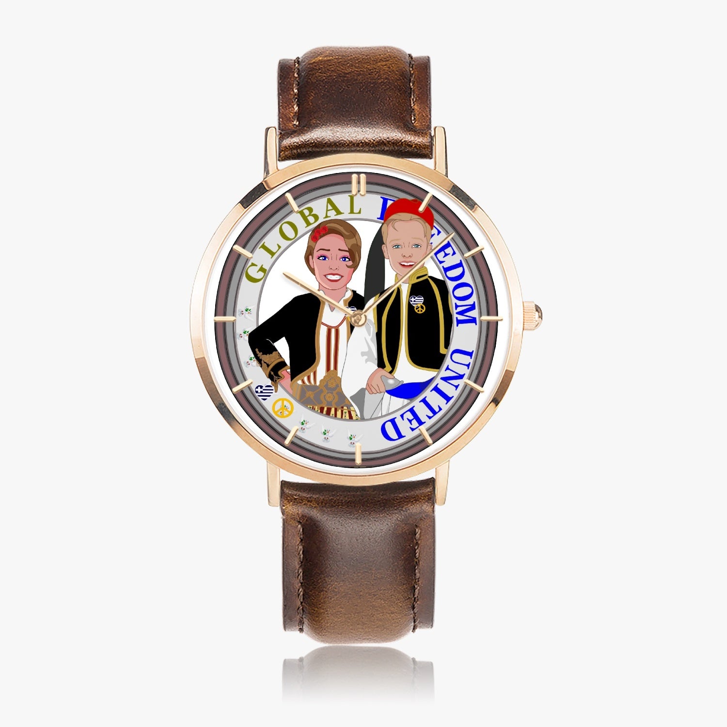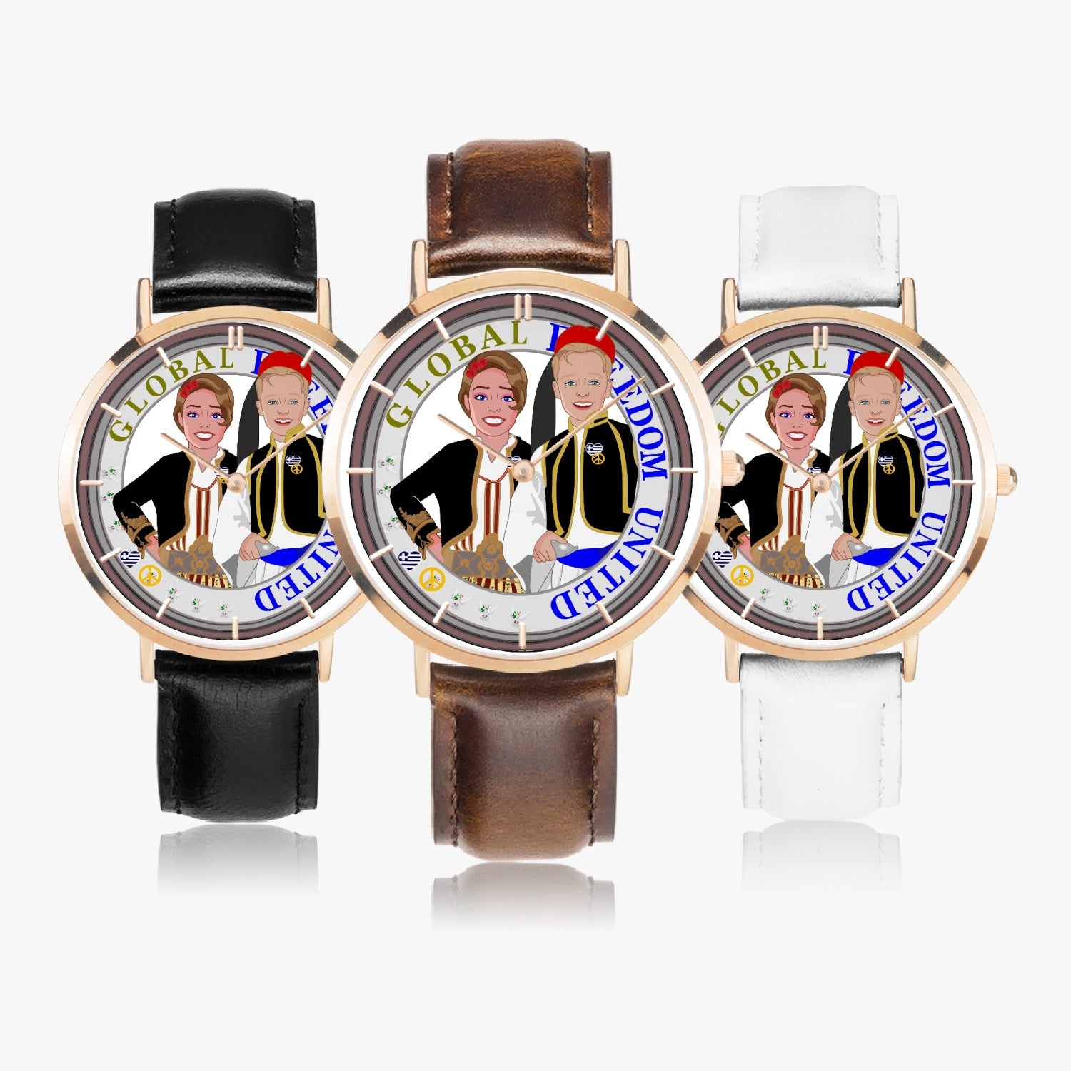 Hot Selling Ultra-Thin Leather Strap Quartz Watch (Rose Gold With Indicators) GLOBAL FREEDOM UNITED© Couple Greece