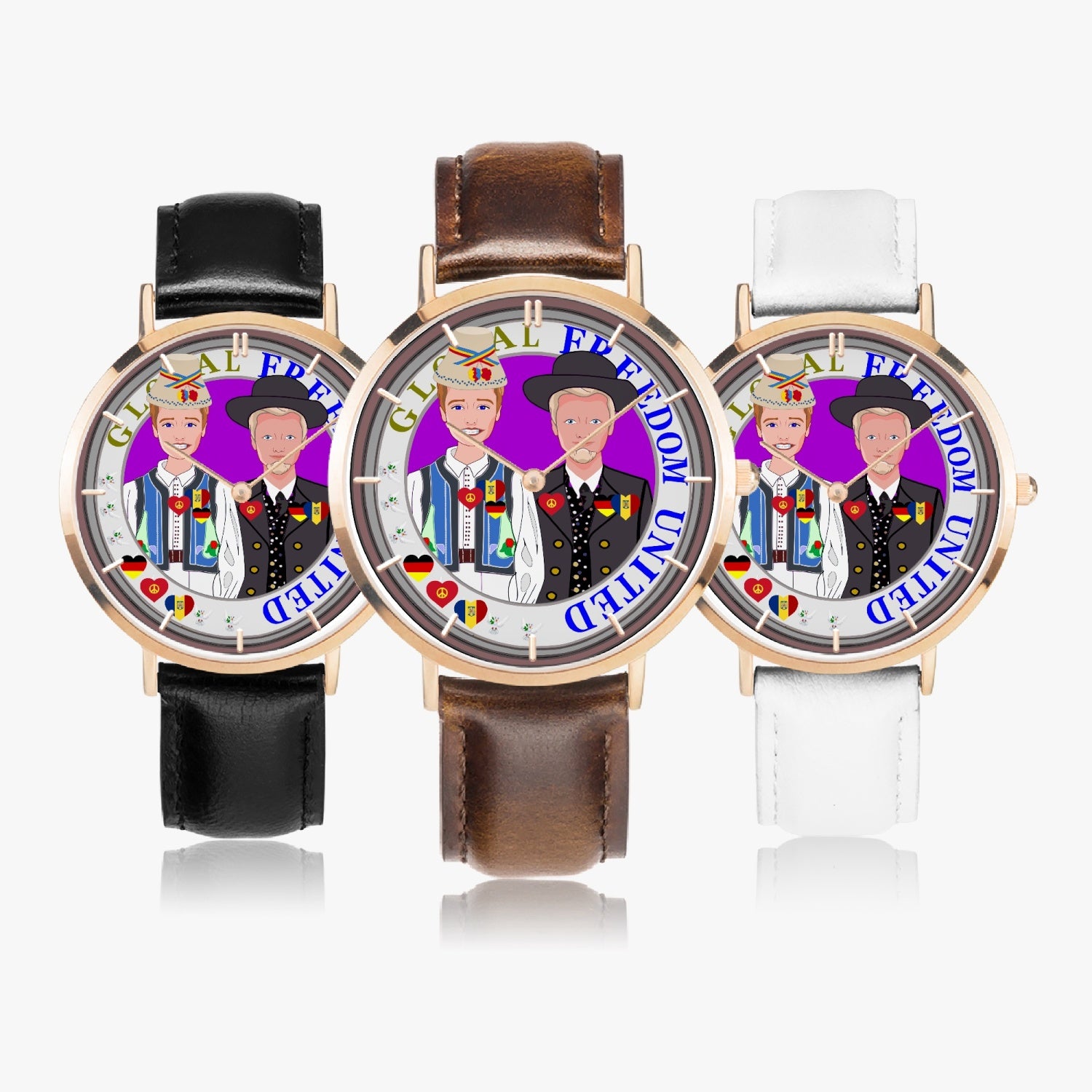Hot Selling Ultra-Thin Leather Strap Quartz Watch (Rose Gold With Indicators) GLOBAL FREEDOM UNITED MEN ROMANIA & GERMANY