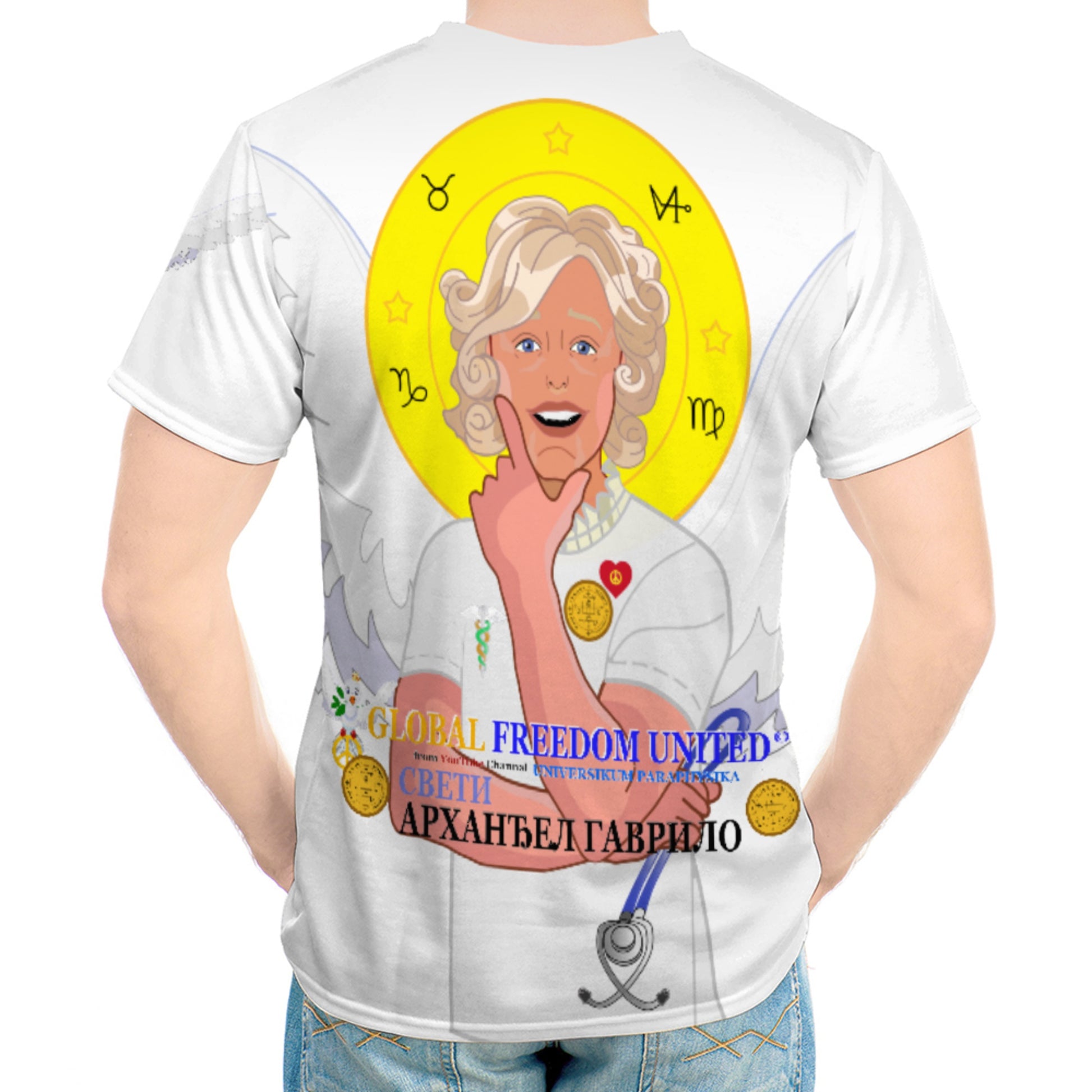Men´s T-shirt GLOBAL FREEDOM UNITED© Archangel Gabriel Wight Dove Of Peace Serbia