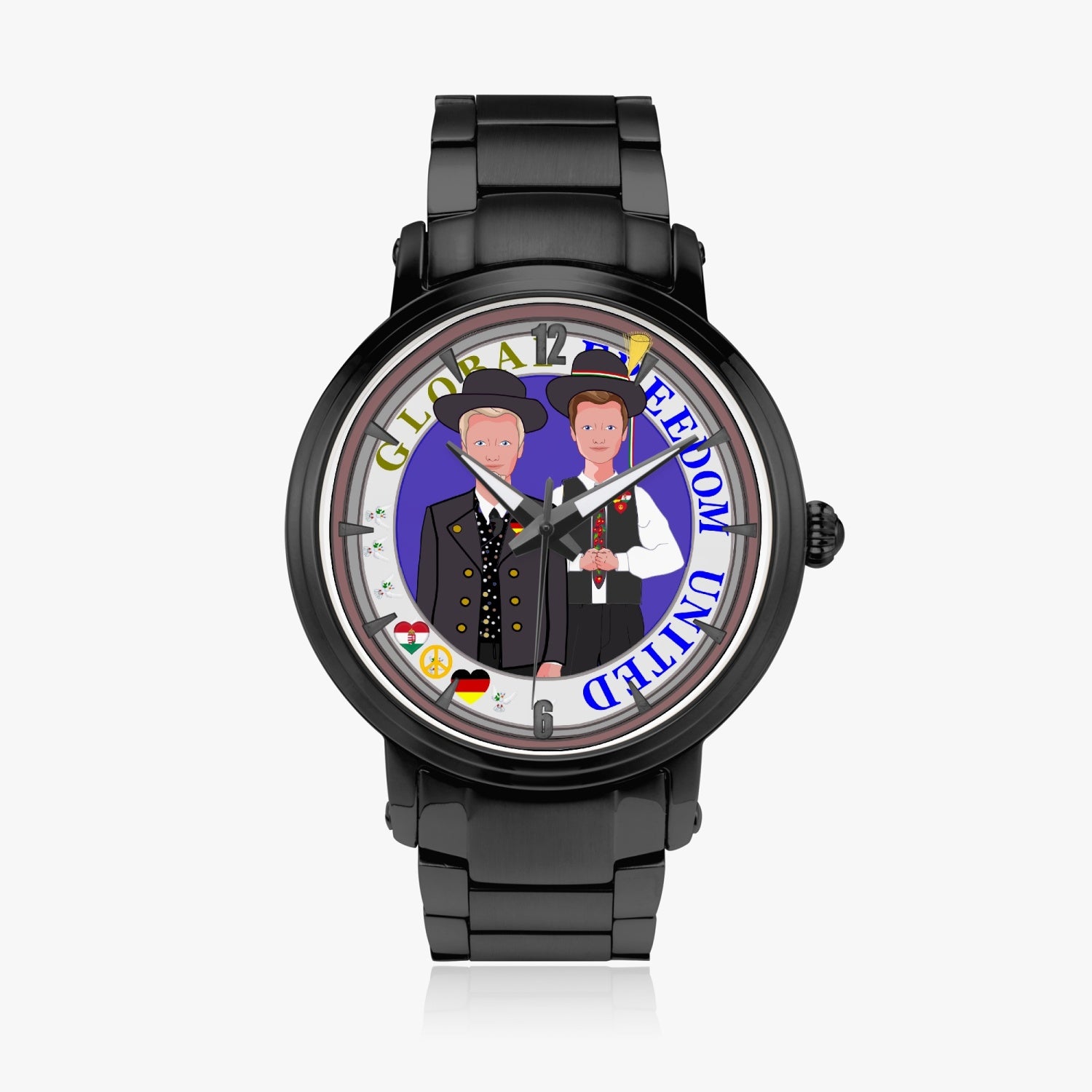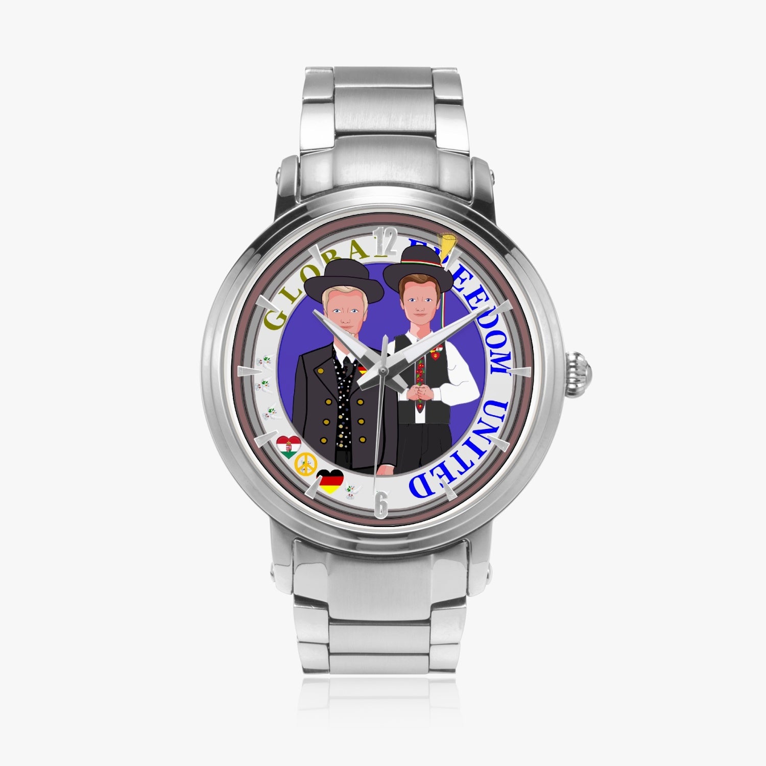 New Steel Strap Automatic Watch (With Indicators) GLOBAL FREEDOM UNITED MEN GERMANY & HUNGARY