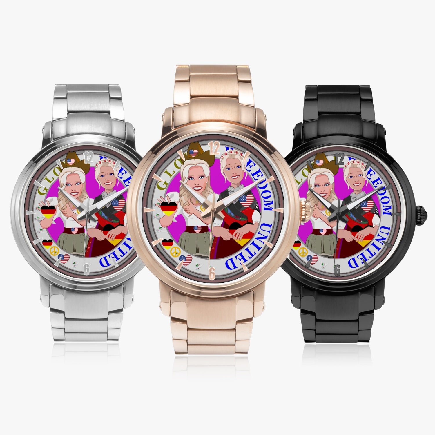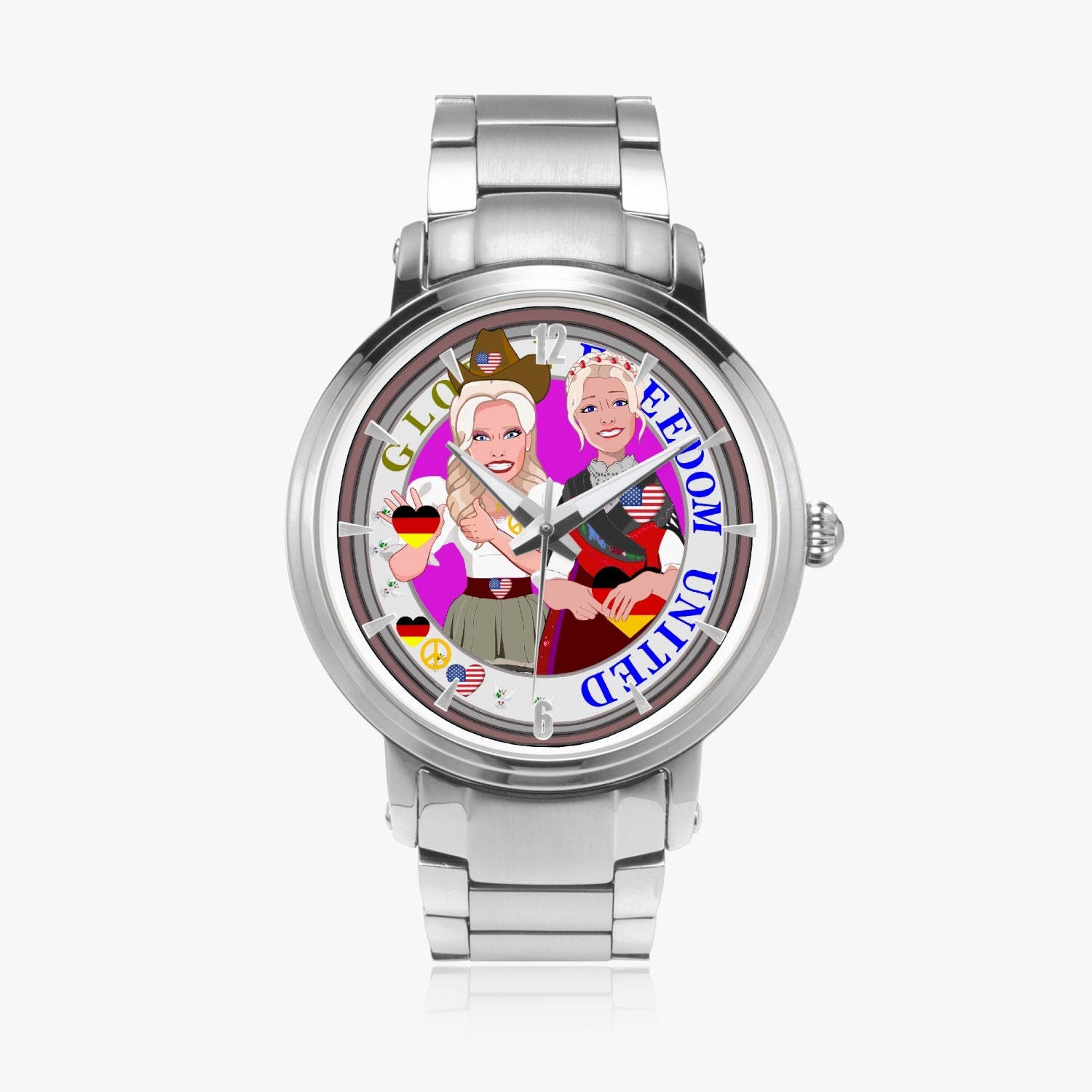 New Steel Strap Automatic Watch (With Indicators) GLOBAL FREEDOM UNITED USA & GERMANY