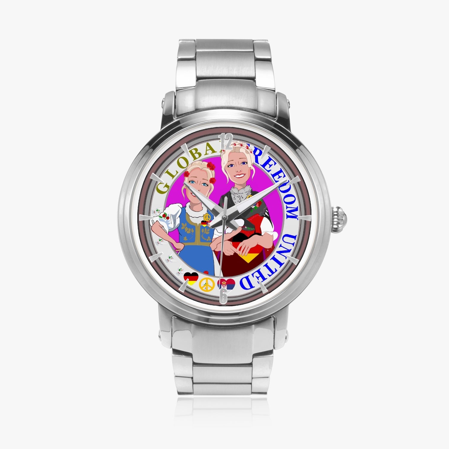 New Steel Strap Automatic Watch (With Indicators) GLOBAL FREEDOM UNITED© Women Serbia & Germany