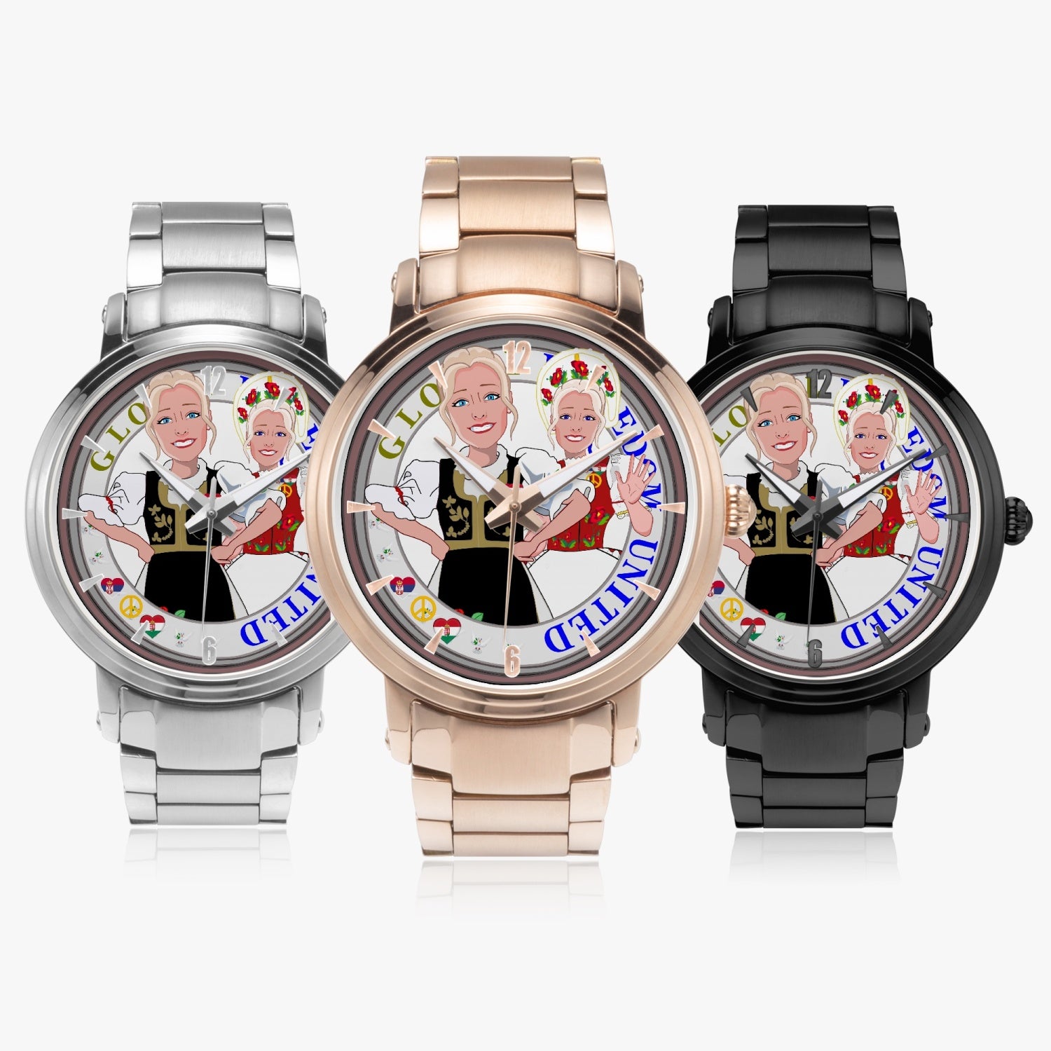 New Steel Strap Automatic Watch (With Indicators) GLOBAL FREEDOM UNITED© WOMEN SERBIA & HUNGARY