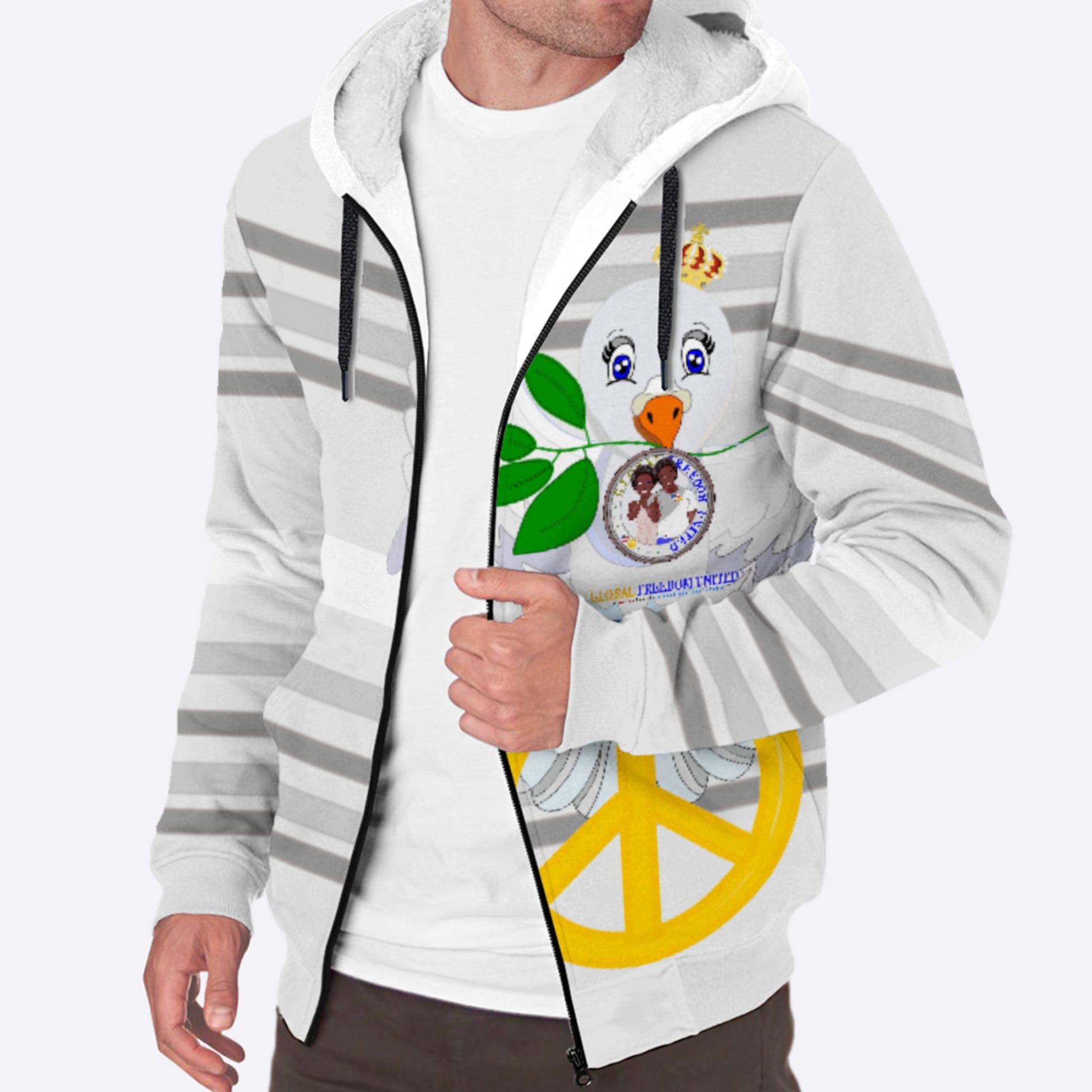 Plush Hoodie GLOBAL FREEDOM UNITED© Couple USA Afro American Grey