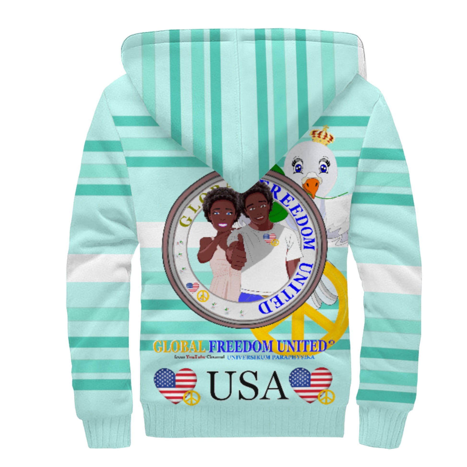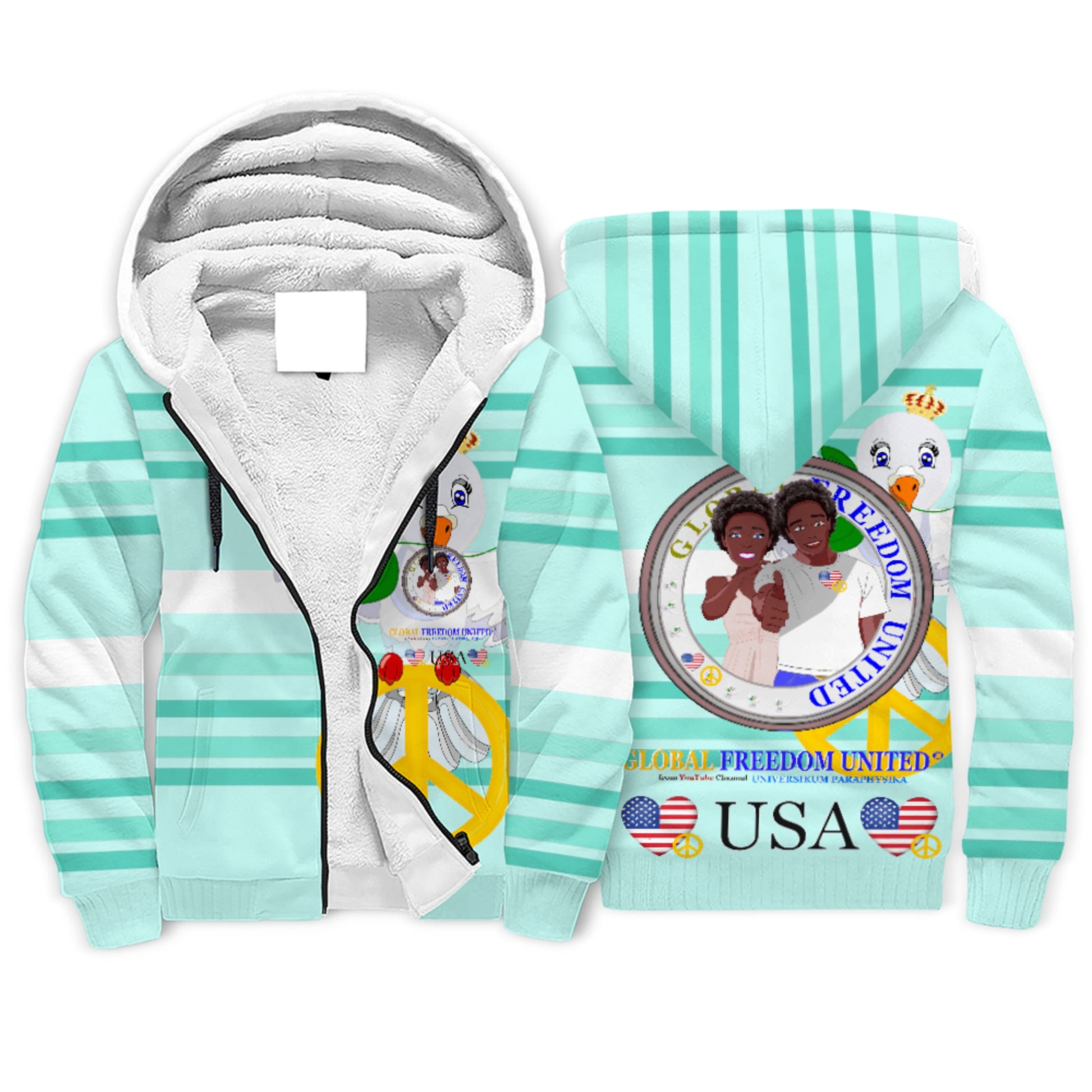 Plush Hoodie GLOBAL FREEDOM UNITED© Couple USA Afro American Light Green