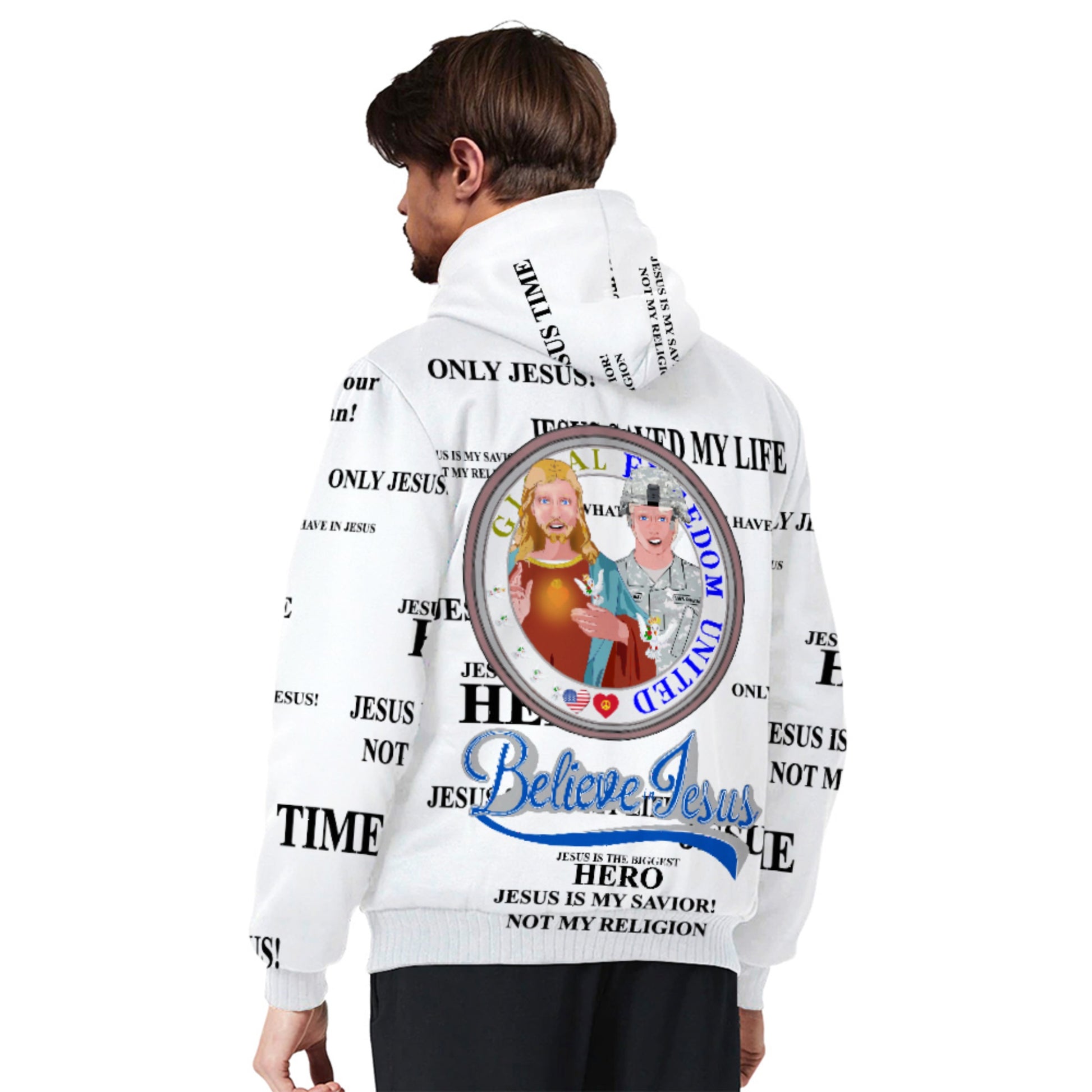 Plush Hoodie GLOBAL FREEDOM UNITED© Jesus Is A Hero Veteran For US American Soldiers Men