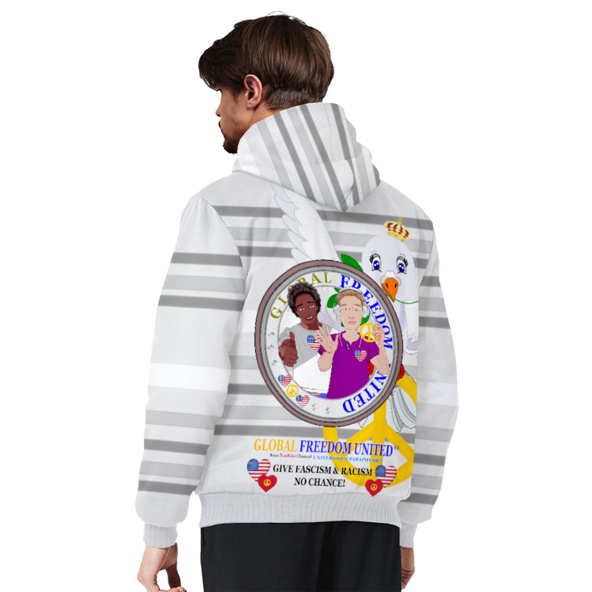 Plush Hoodie GLOBAL FREEDOM UNITED© Men Anti Racism & Fascism USA Grey