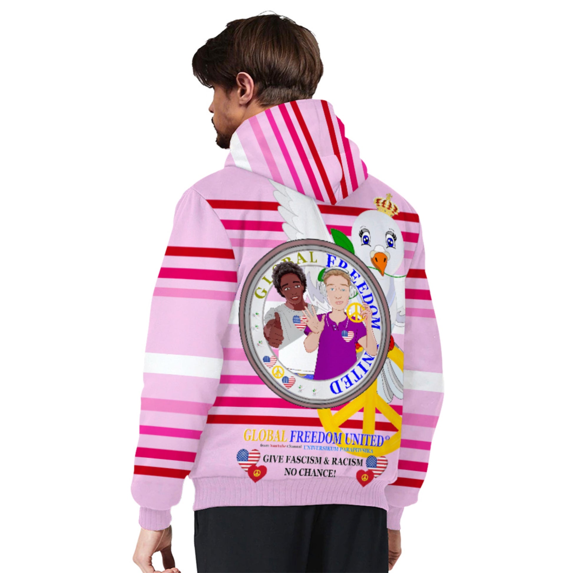 Plush Hoodie GLOBAL FREEDOM UNITED© Men Anti Racism & Fascism USA Pink1