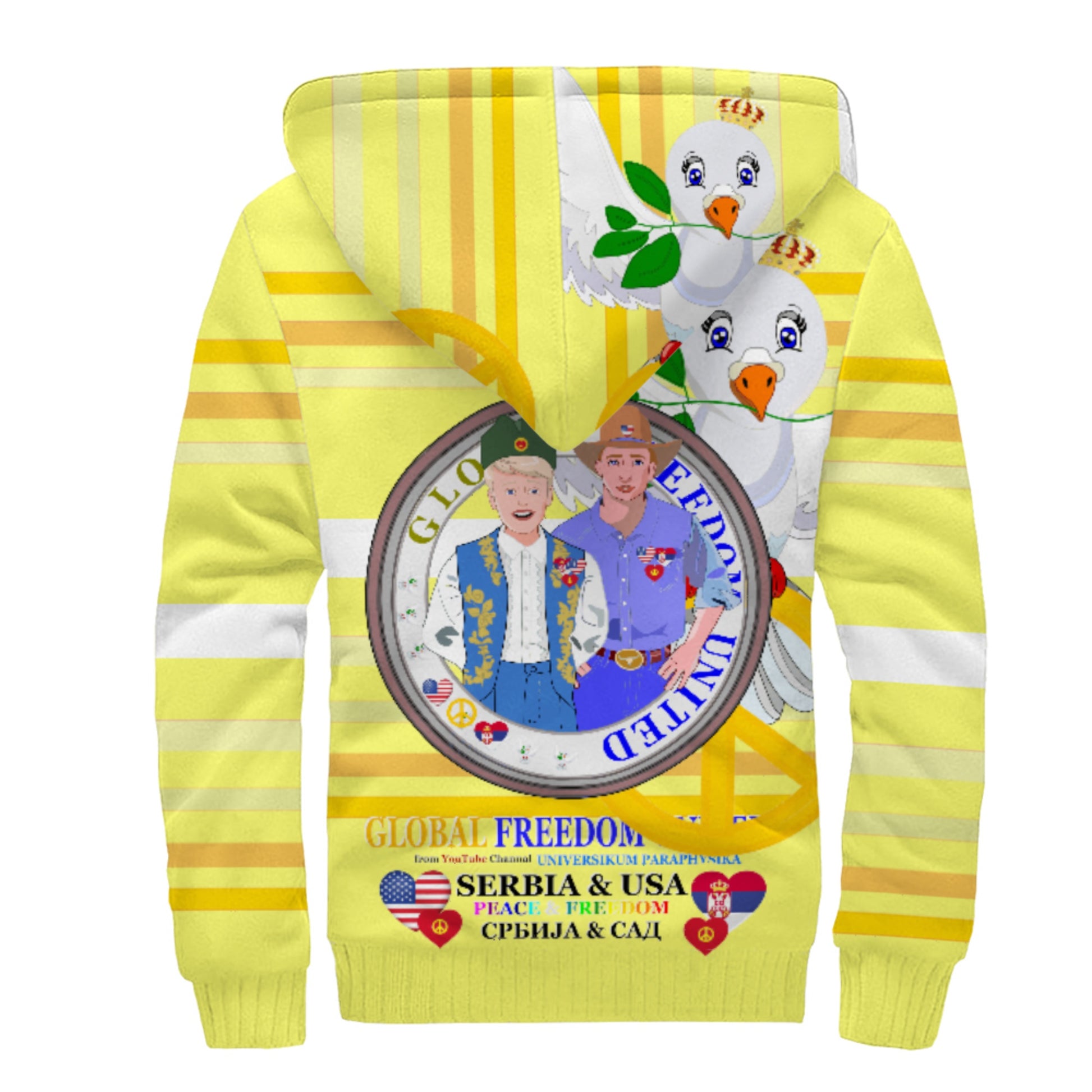Plush Hoodie GLOBAL FREEDOM UNITED© Men Serbia & USA Yellow