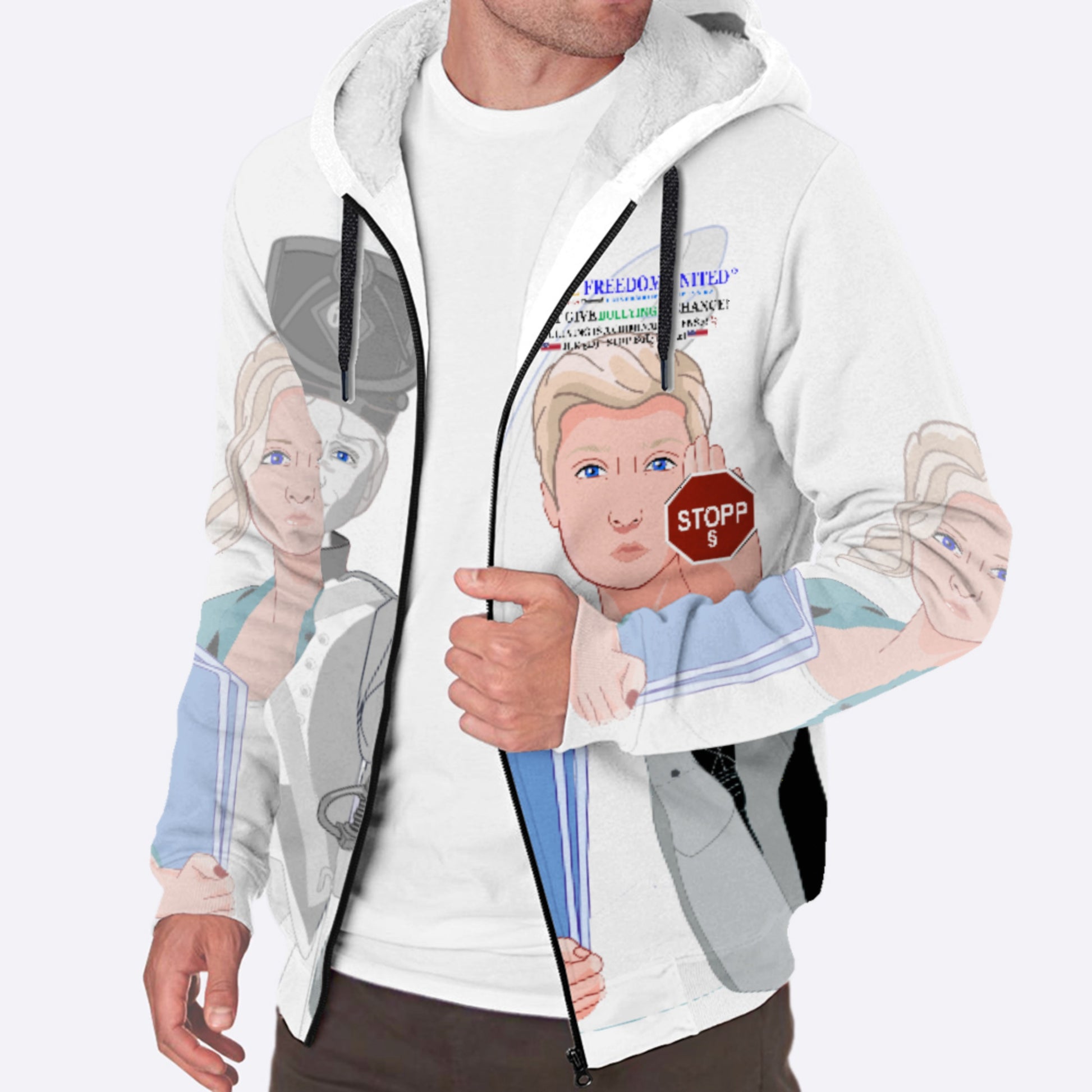 Plush Hoodie GLOBAL FREEDOM UNITED© Anti Bullying Men Blue USA