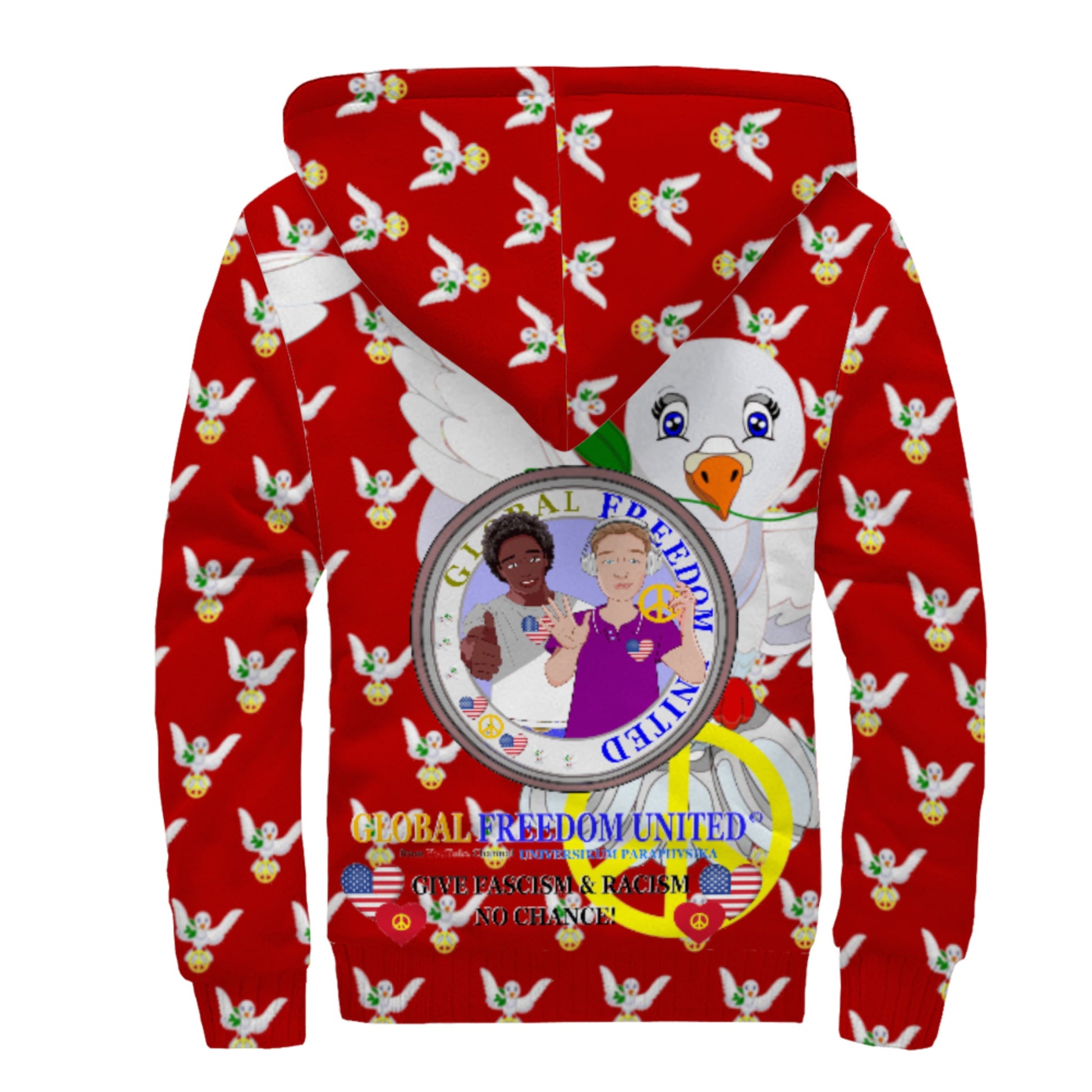 Plush Hoodie GLOBAL FREEDOM UNITED© Men Anti Fascism & Racism USA Red