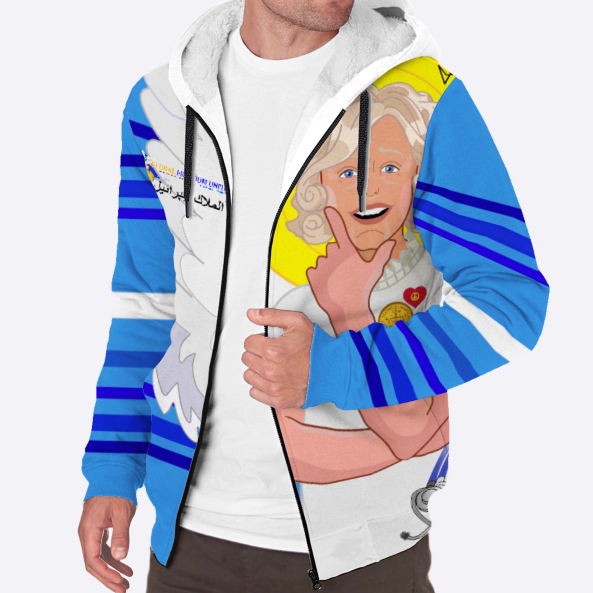 Plush Hoodie GLOBAL FREEDOM UNITED© Archangel Gabriel Arabic Deep Blue