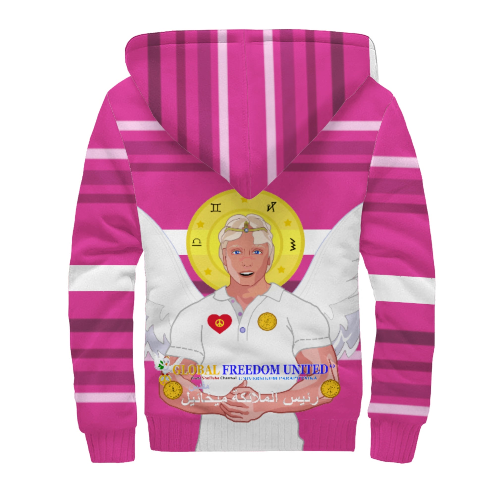 Plush Hoodie Global Freedom United Archangel Michael Arabic V2 Pink1